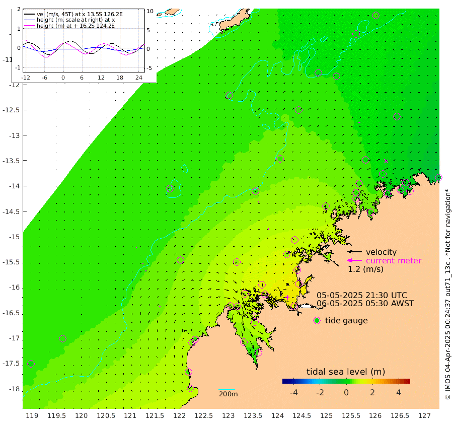 1cm/s 33T +10cm/s rms + 1cm/s 1T. NWSBRW 205m 3cm/s 16T +11cm/s rms + 6cm/s -110T. NWSROW 199m 5cm/s 77T +5cm/s rms + 2cm/s 65T. CAM050 58m 5cm/s 75T +12cm/s rms + 5cm/s 92T. CAM100 99m 3cm/s 82T +7cm/s rms + 1cm/s -85T. KIM400 396m 5cm/s 69T +9cm/s rms + 5cm/s -119T. KIM200 208m 7cm/s 66T +11cm/s rms + 5cm/s -147T. KIM100 99m 9cm/s 45T +8cm/s rms + 3cm/s -103T. KIM050 59m 9cm/s 56T +4cm/s rms + 2cm/s 23T. TIMORS88 91m 23cm Imperieuse Reef 35cm Mermaid Reef 73cm Broome 47cm Cape Baskerville 38cm Red Bluff 32cm Cape Boileau 33cm Scott Reef (WA) 31cm Ashmore Reef 67cm Karrakatta Bay 70cm Sunday Island 61cm Valentine Island 33cm Derby 70cm Port Usborne 85cm Bedford Islands 97cm Yampi Sound (Koolan Island) 130cm Macleay Island 74cm Adele Island 34cm Browse Island 124cm Shale Island 140cm Lizard Island 112cm Hall Point 73cm Degerando Island 77cm White Island 34cm Skua No. 4 Well 23cm Jabiru 57cm Maret Island 43cm Baudin Island 40cm Cape Voltaire (Krait Bay) 11cm Dillon Shoal 33cm Laminaria 40cm Port Warrender 17cm Troughton Island 31cm Cassini Island 24cm West Holothuria Reef Offshore 9cm Jar Island 53cm Lynher Bank 34cm Heywood Shoal 25cm Pee Shoal -7cm Van Cloon Shoal -12cm Carronade Island -10cm Guy Point -22cm Napier Broome Bay -51cm Lesueur Island