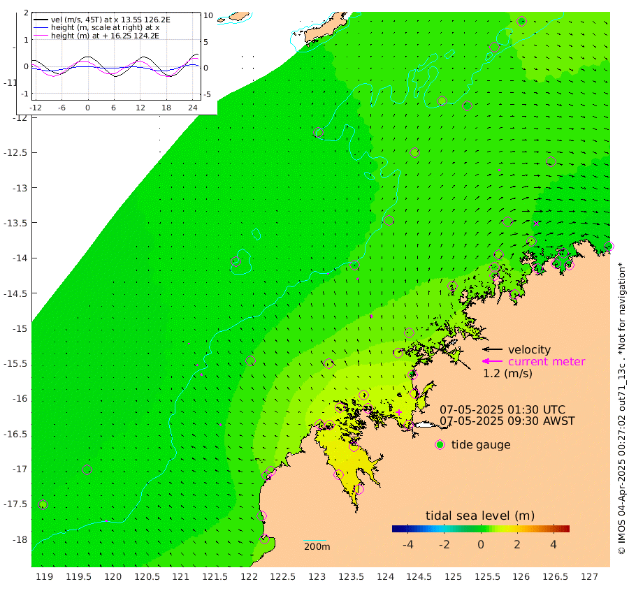 7cm/s -35T +10cm/s rms + 1cm/s 1T. NWSBRW 205m 12cm/s -23T +11cm/s rms + 6cm/s -110T. NWSROW 199m 17cm/s -17T +5cm/s rms + 2cm/s 65T. CAM050 58m 13cm/s -16T +12cm/s rms + 5cm/s 92T. CAM100 99m 3cm/s -26T +7cm/s rms + 1cm/s -85T. KIM400 396m 7cm/s -37T +9cm/s rms + 5cm/s -119T. KIM200 208m 15cm/s -26T +11cm/s rms + 5cm/s -147T. KIM100 99m 13cm/s -34T +8cm/s rms + 3cm/s -103T. KIM050 59m 13cm/s 77T +4cm/s rms + 2cm/s 23T. TIMORS88 91m 50cm Imperieuse Reef 21cm Mermaid Reef 48cm Broome 41cm Cape Baskerville 56cm Red Bluff 38cm Cape Boileau 28cm Scott Reef (WA) 41cm Ashmore Reef 88cm Karrakatta Bay 98cm Sunday Island 148cm Valentine Island 133cm Derby 129cm Port Usborne 107cm Bedford Islands 90cm Yampi Sound (Koolan Island) 117cm Macleay Island 74cm Adele Island 9cm Browse Island 106cm Shale Island 115cm Lizard Island -6cm Hall Point 75cm Degerando Island 47cm White Island 46cm Skua No. 4 Well 26cm Jabiru 56cm Maret Island 34cm Baudin Island 45cm Cape Voltaire (Krait Bay) 35cm Dillon Shoal 26cm Laminaria 53cm Port Warrender 46cm Troughton Island 52cm Cassini Island 34cm West Holothuria Reef Offshore 25cm Jar Island 42cm Lynher Bank 35cm Heywood Shoal 55cm Pee Shoal 33cm Van Cloon Shoal 14cm Carronade Island 10cm Guy Point 14cm Napier Broome Bay -3cm Lesueur Island