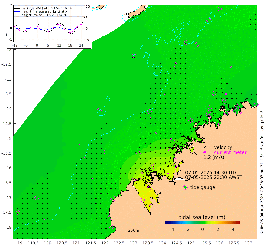 10cm/s -47T +10cm/s rms + 1cm/s 1T. NWSBRW 205m 16cm/s -38T +11cm/s rms + 6cm/s -110T. NWSROW 199m 28cm/s -33T +5cm/s rms + 2cm/s 65T. CAM050 58m 22cm/s -35T +12cm/s rms + 5cm/s 92T. CAM100 99m 5cm/s -52T +7cm/s rms + 1cm/s -85T. KIM400 396m 10cm/s -49T +9cm/s rms + 5cm/s -119T. KIM200 208m 19cm/s -41T +11cm/s rms + 5cm/s -147T. KIM100 99m 21cm/s -49T +8cm/s rms + 3cm/s -103T. KIM050 59m 6cm/s 47T +4cm/s rms + 2cm/s 23T. TIMORS88 91m 34cm Imperieuse Reef -10cm Mermaid Reef 16cm Broome 14cm Cape Baskerville 40cm Red Bluff 19cm Cape Boileau -6cm Scott Reef (WA) 3cm Ashmore Reef 81cm Karrakatta Bay 88cm Sunday Island 129cm Valentine Island 134cm Derby 121cm Port Usborne 84cm Bedford Islands 67cm Yampi Sound (Koolan Island) 79cm Macleay Island 35cm Adele Island -29cm Browse Island 90cm Shale Island 48cm Lizard Island -33cm Hall Point 49cm Degerando Island 16cm White Island 6cm Skua No. 4 Well -10cm Jabiru 13cm Maret Island 6cm Baudin Island 7cm Cape Voltaire (Krait Bay) 17cm Dillon Shoal -19cm Laminaria 15cm Port Warrender -2cm Troughton Island 9cm Cassini Island -6cm West Holothuria Reef Offshore -9cm Jar Island 3cm Lynher Bank 9cm Heywood Shoal 9cm Pee Shoal -6cm Van Cloon Shoal -26cm Carronade Island -24cm Guy Point -27cm Napier Broome Bay -48cm Lesueur Island