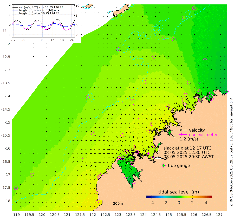 4cm/s 73T +10cm/s rms + 1cm/s 1T. NWSBRW 205m 6cm/s 88T +11cm/s rms + 6cm/s -110T. NWSROW 199m 21cm/s 136T +5cm/s rms + 2cm/s 65T. CAM050 58m 13cm/s 128T +12cm/s rms + 5cm/s 92T. CAM100 99m 5cm/s 81T +7cm/s rms + 1cm/s -85T. KIM400 396m 8cm/s 94T +9cm/s rms + 5cm/s -119T. KIM200 208m 13cm/s 93T +11cm/s rms + 5cm/s -147T. KIM100 99m 23cm/s 64T +8cm/s rms + 3cm/s -103T. KIM050 59m 3cm/s -86T +4cm/s rms + 2cm/s 23T. TIMORS88 91m 33cm Imperieuse Reef 65cm Mermaid Reef 159cm Broome 123cm Cape Baskerville 129cm Red Bluff 126cm Cape Boileau 64cm Scott Reef (WA) 58cm Ashmore Reef 114cm Karrakatta Bay 107cm Sunday Island 7cm Valentine Island -55cm Derby 12cm Port Usborne 142cm Bedford Islands 158cm Yampi Sound (Koolan Island) 214cm Macleay Island 139cm Adele Island 88cm Browse Island 166cm Shale Island 155cm Lizard Island 116cm Hall Point 146cm Degerando Island 145cm White Island 72cm Skua No. 4 Well 40cm Jabiru 122cm Maret Island 109cm Baudin Island 103cm Cape Voltaire (Krait Bay) 47cm Dillon Shoal 40cm Laminaria 115cm Port Warrender 54cm Troughton Island 97cm Cassini Island 72cm West Holothuria Reef Offshore 46cm Jar Island 88cm Lynher Bank 101cm Heywood Shoal 55cm Pee Shoal 23cm Van Cloon Shoal 18cm Carronade Island 27cm Guy Point 23cm Napier Broome Bay -54cm Lesueur Island