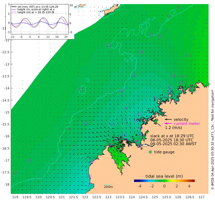4cm/s -84T +10cm/s rms + 1cm/s 1T. NWSBRW 205m 6cm/s -97T +11cm/s rms + 6cm/s -110T. NWSROW 199m 25cm/s -48T +5cm/s rms + 2cm/s 65T. CAM050 58m 17cm/s -57T +12cm/s rms + 5cm/s 92T. CAM100 99m 5cm/s -97T +7cm/s rms + 1cm/s -85T. KIM400 396m 9cm/s -87T +9cm/s rms + 5cm/s -119T. KIM200 208m 14cm/s -93T +11cm/s rms + 5cm/s -147T. KIM100 99m 25cm/s -112T +8cm/s rms + 3cm/s -103T. KIM050 59m 2cm/s 94T +4cm/s rms + 2cm/s 23T. TIMORS88 91m -48cm Imperieuse Reef -81cm Mermaid Reef -183cm Broome -137cm Cape Baskerville -141cm Red Bluff -144cm Cape Boileau -81cm Scott Reef (WA) -80cm Ashmore Reef -118cm Karrakatta Bay -111cm Sunday Island -13cm Valentine Island 59cm Derby -15cm Port Usborne -153cm Bedford Islands -179cm Yampi Sound (Koolan Island) -233cm Macleay Island -161cm Adele Island -114cm Browse Island -183cm Shale Island -217cm Lizard Island -153cm Hall Point -170cm Degerando Island -171cm White Island -93cm Skua No. 4 Well -68cm Jabiru -153cm Maret Island -127cm Baudin Island -136cm Cape Voltaire (Krait Bay) -57cm Dillon Shoal -56cm Laminaria -153cm Port Warrender -93cm Troughton Island -130cm Cassini Island -102cm West Holothuria Reef Offshore -81cm Jar Island -111cm Lynher Bank -118cm Heywood Shoal -83cm Pee Shoal -57cm Van Cloon Shoal -59cm Carronade Island -61cm Guy Point -68cm Napier Broome Bay 7cm Lesueur Island