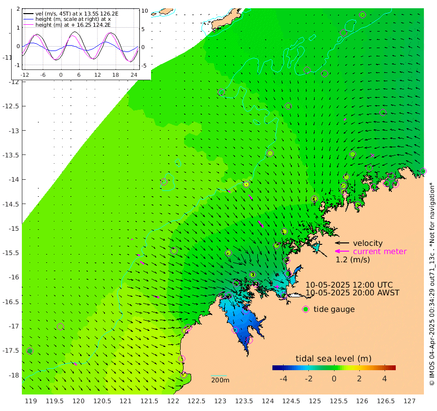 23cm/s 127T +10cm/s rms + 1cm/s 1T. NWSBRW 205m 28cm/s 137T +11cm/s rms + 6cm/s -110T. NWSROW 199m 70cm/s 143T +5cm/s rms + 2cm/s 65T. CAM050 58m 49cm/s 143T +12cm/s rms + 5cm/s 92T. CAM100 99m 11cm/s 115T +7cm/s rms + 1cm/s -85T. KIM400 396m 23cm/s 120T +9cm/s rms + 5cm/s -119T. KIM200 208m 40cm/s 126T +11cm/s rms + 5cm/s -147T. KIM100 99m 49cm/s 105T +8cm/s rms + 3cm/s -103T. KIM050 59m 22cm/s -127T +4cm/s rms + 2cm/s 23T. TIMORS88 91m -43cm Imperieuse Reef 56cm Mermaid Reef 118cm Broome 91cm Cape Baskerville 70cm Red Bluff 88cm Cape Boileau 50cm Scott Reef (WA) 25cm Ashmore Reef -33cm Karrakatta Bay -66cm Sunday Island -247cm Valentine Island -319cm Derby -227cm Port Usborne -3cm Bedford Islands 20cm Yampi Sound (Koolan Island) 67cm Macleay Island 63cm Adele Island 120cm Browse Island -20cm Shale Island -7cm Lizard Island 42cm Hall Point 48cm Degerando Island 80cm White Island 41cm Skua No. 4 Well 1cm Jabiru 80cm Maret Island 72cm Baudin Island 66cm Cape Voltaire (Krait Bay) -4cm Dillon Shoal 32cm Laminaria 56cm Port Warrender 13cm Troughton Island 64cm Cassini Island 46cm West Holothuria Reef Offshore 16cm Jar Island 48cm Lynher Bank 70cm Heywood Shoal 14cm Pee Shoal -8cm Van Cloon Shoal 10cm Carronade Island 14cm Guy Point 14cm Napier Broome Bay -53cm Lesueur Island
