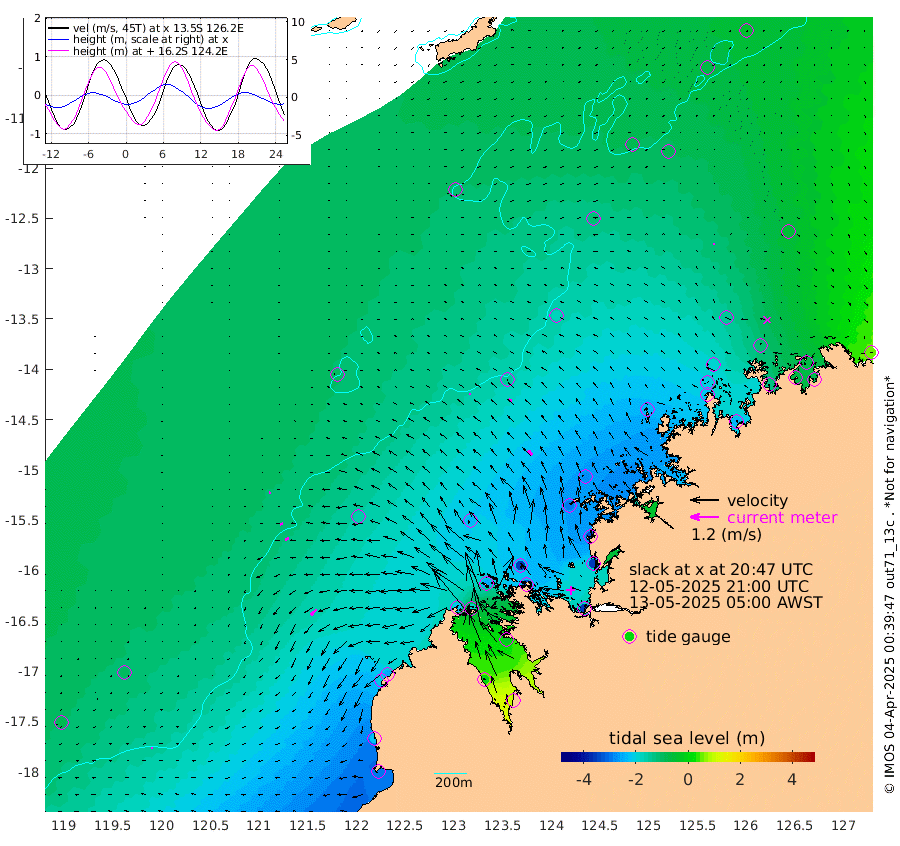 7cm/s 177T +10cm/s rms + 1cm/s 1T. NWSBRW 205m 7cm/s -144T +11cm/s rms + 6cm/s -110T. NWSROW 199m 24cm/s -45T +5cm/s rms + 2cm/s 65T. CAM050 58m 15cm/s -70T +12cm/s rms + 5cm/s 92T. CAM100 99m 6cm/s -119T +7cm/s rms + 1cm/s -85T. KIM400 396m 11cm/s -105T +9cm/s rms + 5cm/s -119T. KIM200 208m 17cm/s -116T +11cm/s rms + 5cm/s -147T. KIM100 99m 34cm/s -134T +8cm/s rms + 3cm/s -103T. KIM050 59m 7cm/s 94T +4cm/s rms + 2cm/s 23T. TIMORS88 91m -78cm Imperieuse Reef -104cm Mermaid Reef -297cm Broome -206cm Cape Baskerville -248cm Red Bluff -214cm Cape Boileau -95cm Scott Reef (WA) -108cm Ashmore Reef -217cm Karrakatta Bay -184cm Sunday Island 10cm Valentine Island 103cm Derby -26cm Port Usborne -249cm Bedford Islands -318cm Yampi Sound (Koolan Island) -354cm Macleay Island -236cm Adele Island -147cm Browse Island -354cm Shale Island -355cm Lizard Island -340cm Hall Point -287cm Degerando Island -281cm White Island -114cm Skua No. 4 Well -87cm Jabiru -234cm Maret Island -205cm Baudin Island -211cm Cape Voltaire (Krait Bay) -70cm Dillon Shoal -42cm Laminaria -234cm Port Warrender -119cm Troughton Island -195cm Cassini Island -137cm West Holothuria Reef Offshore -124cm Jar Island -154cm Lynher Bank -173cm Heywood Shoal -89cm Pee Shoal -59cm Van Cloon Shoal -70cm Carronade Island -66cm Guy Point -77cm Napier Broome Bay 47cm Lesueur Island