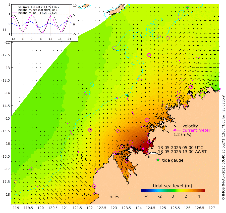31cm/s -44T +10cm/s rms + 1cm/s 1T. NWSBRW 205m 38cm/s -31T +11cm/s rms + 6cm/s -110T. NWSROW 199m 60cm/s -31T +5cm/s rms + 2cm/s 65T. CAM050 58m 48cm/s -27T +12cm/s rms + 5cm/s 92T. CAM100 99m 11cm/s -34T +7cm/s rms + 1cm/s -85T. KIM400 396m 22cm/s -37T +9cm/s rms + 5cm/s -119T. KIM200 208m 43cm/s -31T +11cm/s rms + 5cm/s -147T. KIM100 99m 51cm/s -34T +8cm/s rms + 3cm/s -103T. KIM050 59m 26cm/s 35T +4cm/s rms + 2cm/s 23T. TIMORS88 91m 144cm Imperieuse Reef 57cm Mermaid Reef 189cm Broome 131cm Cape Baskerville 201cm Red Bluff 142cm Cape Boileau 54cm Scott Reef (WA) 98cm Ashmore Reef 298cm Karrakatta Bay 304cm Sunday Island 336cm Valentine Island 305cm Derby 326cm Port Usborne 284cm Bedford Islands 337cm Yampi Sound (Koolan Island) 337cm Macleay Island 200cm Adele Island 25cm Browse Island 427cm Shale Island 415cm Lizard Island 375cm Hall Point 263cm Degerando Island 230cm White Island 87cm Skua No. 4 Well 115cm Jabiru 167cm Maret Island 157cm Baudin Island 156cm Cape Voltaire (Krait Bay) 98cm Dillon Shoal 23cm Laminaria 205cm Port Warrender 131cm Troughton Island 143cm Cassini Island 113cm West Holothuria Reef Offshore 130cm Jar Island 120cm Lynher Bank 114cm Heywood Shoal 93cm Pee Shoal 92cm Van Cloon Shoal 79cm Carronade Island 75cm Guy Point 84cm Napier Broome Bay 32cm Lesueur Island