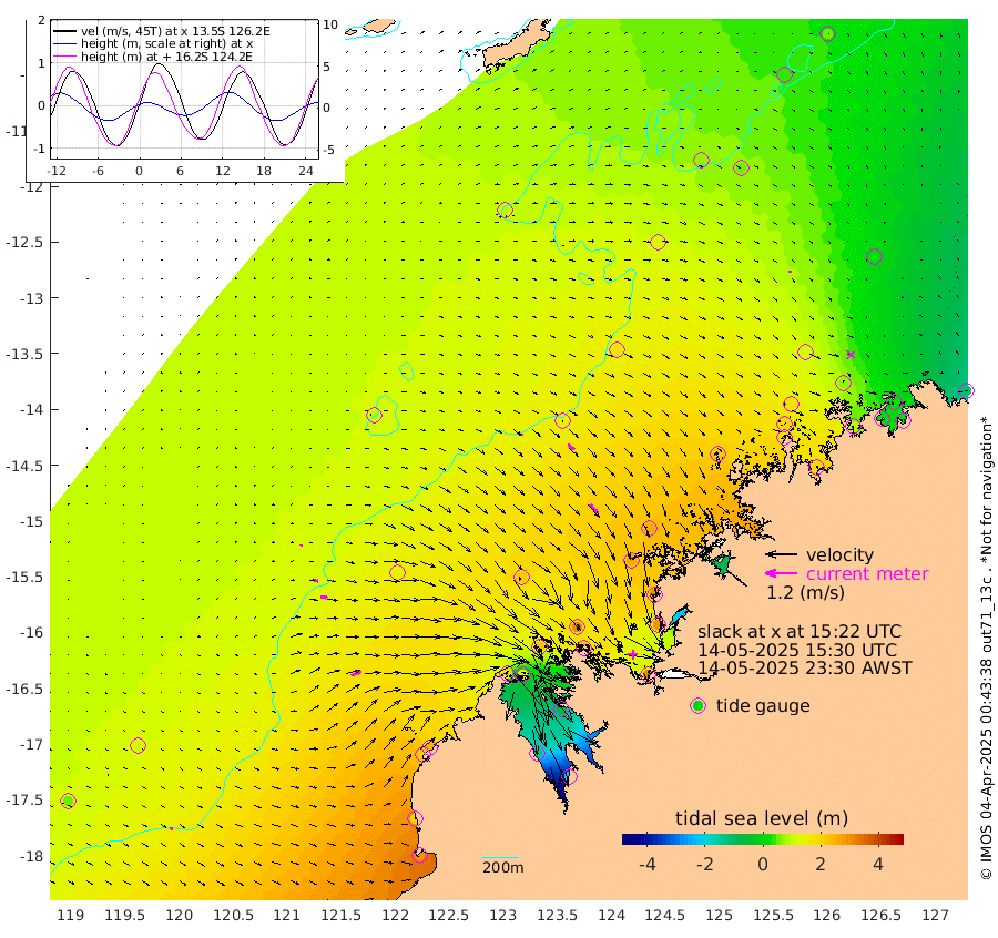 6cm/s 56T +10cm/s rms + 1cm/s 1T. NWSBRW 205m 12cm/s 95T +11cm/s rms + 6cm/s -110T. NWSROW 199m 43cm/s 140T +5cm/s rms + 2cm/s 65T. CAM050 58m 30cm/s 129T +12cm/s rms + 5cm/s 92T. CAM100 99m 9cm/s 87T +7cm/s rms + 1cm/s -85T. KIM400 396m 17cm/s 97T +9cm/s rms + 5cm/s -119T. KIM200 208m 27cm/s 98T +11cm/s rms + 5cm/s -147T. KIM100 99m 40cm/s 66T +8cm/s rms + 3cm/s -103T. KIM050 59m 7cm/s -163T +4cm/s rms + 2cm/s 23T. TIMORS88 91m 47cm Imperieuse Reef 110cm Mermaid Reef 298cm Broome 208cm Cape Baskerville 251cm Red Bluff 198cm Cape Boileau 94cm Scott Reef (WA) 98cm Ashmore Reef 180cm Karrakatta Bay 132cm Sunday Island -120cm Valentine Island -225cm Derby -67cm Port Usborne 226cm Bedford Islands 283cm Yampi Sound (Koolan Island) 310cm Macleay Island 216cm Adele Island 145cm Browse Island 311cm Shale Island 295cm Lizard Island 303cm Hall Point 261cm Degerando Island 258cm White Island 107cm Skua No. 4 Well 57cm Jabiru 223cm Maret Island 194cm Baudin Island 191cm Cape Voltaire (Krait Bay) 44cm Dillon Shoal 55cm Laminaria 189cm Port Warrender 74cm Troughton Island 174cm Cassini Island 109cm West Holothuria Reef Offshore 82cm Jar Island 145cm Lynher Bank 172cm Heywood Shoal 69cm Pee Shoal 16cm Van Cloon Shoal 22cm Carronade Island 20cm Guy Point 19cm Napier Broome Bay -116cm Lesueur Island