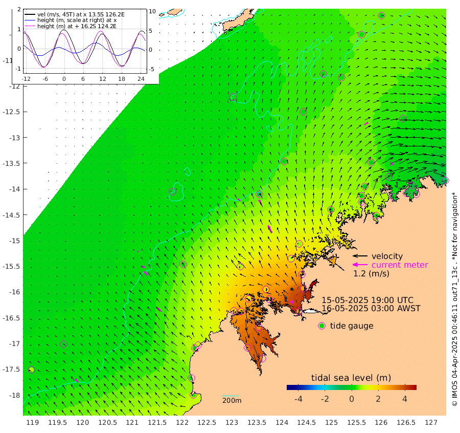 26cm/s -49T +10cm/s rms + 1cm/s 1T. NWSBRW 205m 36cm/s -38T +11cm/s rms + 6cm/s -110T. NWSROW 199m 68cm/s -29T +5cm/s rms + 2cm/s 65T. CAM050 58m 50cm/s -28T +12cm/s rms + 5cm/s 92T. CAM100 99m 9cm/s -41T +7cm/s rms + 1cm/s -85T. KIM400 396m 23cm/s -44T +9cm/s rms + 5cm/s -119T. KIM200 208m 42cm/s -40T +11cm/s rms + 5cm/s -147T. KIM100 99m 47cm/s -49T +8cm/s rms + 3cm/s -103T. KIM050 59m 36cm/s 57T +4cm/s rms + 2cm/s 23T. TIMORS88 91m 78cm Imperieuse Reef -5cm Mermaid Reef 34cm Broome 12cm Cape Baskerville 94cm Red Bluff 4cm Cape Boileau -9cm Scott Reef (WA) 19cm Ashmore Reef 186cm Karrakatta Bay 202cm Sunday Island 326cm Valentine Island 327cm Derby 302cm Port Usborne 155cm Bedford Islands 177cm Yampi Sound (Koolan Island) 169cm Macleay Island 76cm Adele Island -78cm Browse Island 268cm Shale Island 256cm Lizard Island 241cm Hall Point 102cm Degerando Island 74cm White Island 6cm Skua No. 4 Well 28cm Jabiru 24cm Maret Island 16cm Baudin Island 9cm Cape Voltaire (Krait Bay) 27cm Dillon Shoal -2cm Laminaria 28cm Port Warrender -10cm Troughton Island -1cm Cassini Island -6cm West Holothuria Reef Offshore -7cm Jar Island 25cm Lynher Bank 8cm Heywood Shoal 14cm Pee Shoal -13cm Van Cloon Shoal -50cm Carronade Island -52cm Guy Point -58cm Napier Broome Bay -97cm Lesueur Island