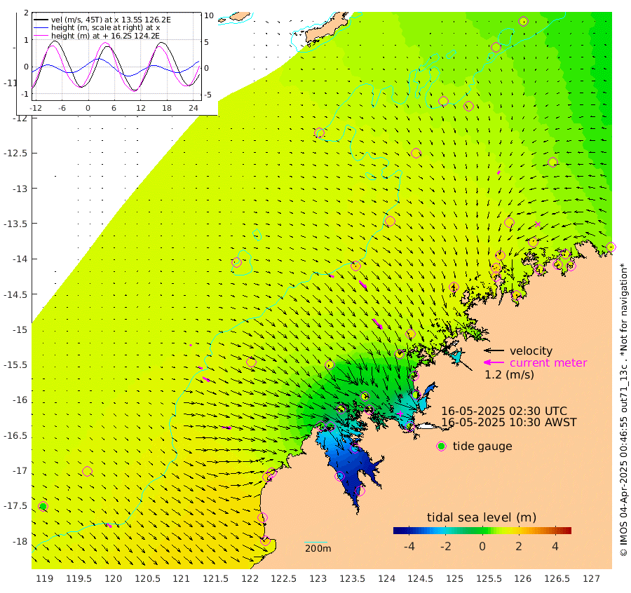 26cm/s 115T +10cm/s rms + 1cm/s 1T. NWSBRW 205m 32cm/s 131T +11cm/s rms + 6cm/s -110T. NWSROW 199m 82cm/s 139T +5cm/s rms + 2cm/s 65T. CAM050 58m 60cm/s 133T +12cm/s rms + 5cm/s 92T. CAM100 99m 12cm/s 109T +7cm/s rms + 1cm/s -85T. KIM400 396m 26cm/s 115T +9cm/s rms + 5cm/s -119T. KIM200 208m 48cm/s 119T +11cm/s rms + 5cm/s -147T. KIM100 99m 57cm/s 97T +8cm/s rms + 3cm/s -103T. KIM050 59m 20cm/s -147T +4cm/s rms + 2cm/s 23T. TIMORS88 91m 27cm Imperieuse Reef 130cm Mermaid Reef 223cm Broome 184cm Cape Baskerville 143cm Red Bluff 181cm Cape Boileau 121cm Scott Reef (WA) 120cm Ashmore Reef 36cm Karrakatta Bay -6cm Sunday Island -258cm Valentine Island -341cm Derby -221cm Port Usborne 91cm Bedford Islands 112cm Yampi Sound (Koolan Island) 121cm Macleay Island 139cm Adele Island 182cm Browse Island 64cm Shale Island 77cm Lizard Island 70cm Hall Point 154cm Degerando Island 171cm White Island 135cm Skua No. 4 Well 94cm Jabiru 198cm Maret Island 187cm Baudin Island 192cm Cape Voltaire (Krait Bay) 79cm Dillon Shoal 112cm Laminaria 187cm Port Warrender 158cm Troughton Island 195cm Cassini Island 155cm West Holothuria Reef Offshore 146cm Jar Island 136cm Lynher Bank 180cm Heywood Shoal 115cm Pee Shoal 109cm Van Cloon Shoal 146cm Carronade Island 151cm Guy Point 154cm Napier Broome Bay 122cm Lesueur Island