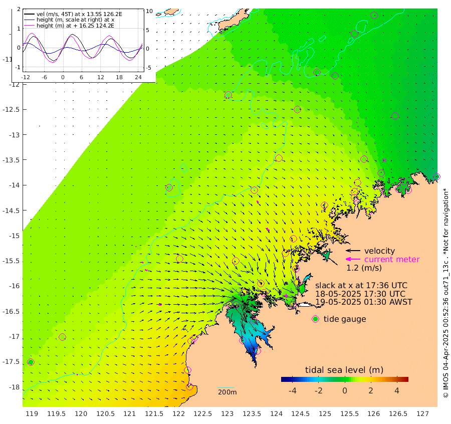 4cm/s 29T +10cm/s rms + 1cm/s 1T. NWSBRW 205m 10cm/s 111T +11cm/s rms + 6cm/s -110T. NWSROW 199m 33cm/s 142T +5cm/s rms + 2cm/s 65T. CAM050 58m 22cm/s 134T +12cm/s rms + 5cm/s 92T. CAM100 99m 7cm/s 95T +7cm/s rms + 1cm/s -85T. KIM400 396m 13cm/s 99T +9cm/s rms + 5cm/s -119T. KIM200 208m 22cm/s 106T +11cm/s rms + 5cm/s -147T. KIM100 99m 26cm/s 72T +8cm/s rms + 3cm/s -103T. KIM050 59m 6cm/s -140T +4cm/s rms + 2cm/s 23T. TIMORS88 91m 18cm Imperieuse Reef 68cm Mermaid Reef 192cm Broome 128cm Cape Baskerville 133cm Red Bluff 112cm Cape Boileau 54cm Scott Reef (WA) 53cm Ashmore Reef 97cm Karrakatta Bay 59cm Sunday Island -150cm Valentine Island -208cm Derby -83cm Port Usborne 138cm Bedford Islands 168cm Yampi Sound (Koolan Island) 165cm Macleay Island 116cm Adele Island 95cm Browse Island 189cm Shale Island 164cm Lizard Island 192cm Hall Point 160cm Degerando Island 157cm White Island 55cm Skua No. 4 Well 28cm Jabiru 135cm Maret Island 124cm Baudin Island 114cm Cape Voltaire (Krait Bay) 4cm Dillon Shoal 27cm Laminaria 99cm Port Warrender 31cm Troughton Island 98cm Cassini Island 52cm West Holothuria Reef Offshore 42cm Jar Island 91cm Lynher Bank 95cm Heywood Shoal 21cm Pee Shoal -12cm Van Cloon Shoal 0cm Carronade Island -3cm Guy Point -8cm Napier Broome Bay -78cm Lesueur Island