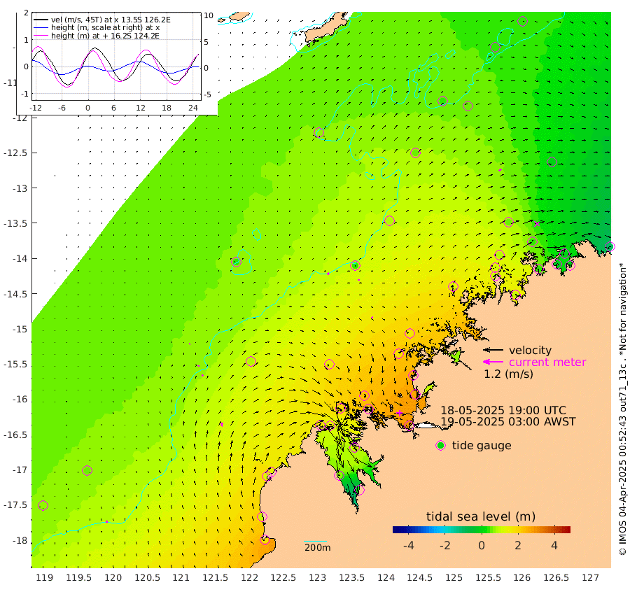 12cm/s -34T +10cm/s rms + 1cm/s 1T. NWSBRW 205m 12cm/s -12T +11cm/s rms + 6cm/s -110T. NWSROW 199m 7cm/s -16T +5cm/s rms + 2cm/s 65T. CAM050 58m 8cm/s 8T +12cm/s rms + 5cm/s 92T. CAM100 99m 4cm/s 41T +7cm/s rms + 1cm/s -85T. KIM400 396m 7cm/s 29T +9cm/s rms + 5cm/s -119T. KIM200 208m 11cm/s 15T +11cm/s rms + 5cm/s -147T. KIM100 99m 21cm/s 9T +8cm/s rms + 3cm/s -103T. KIM050 59m 16cm/s 56T +4cm/s rms + 2cm/s 23T. TIMORS88 91m 61cm Imperieuse Reef 56cm Mermaid Reef 168cm Broome 106cm Cape Baskerville 142cm Red Bluff 90cm Cape Boileau 45cm Scott Reef (WA) 62cm Ashmore Reef 177cm Karrakatta Bay 152cm Sunday Island 62cm Valentine Island 24cm Derby 106cm Port Usborne 184cm Bedford Islands 222cm Yampi Sound (Koolan Island) 229cm Macleay Island 138cm Adele Island 45cm Browse Island 288cm Shale Island 262cm Lizard Island 263cm Hall Point 177cm Degerando Island 161cm White Island 59cm Skua No. 4 Well 47cm Jabiru 123cm Maret Island 111cm Baudin Island 99cm Cape Voltaire (Krait Bay) 30cm Dillon Shoal 32cm Laminaria 91cm Port Warrender 36cm Troughton Island 87cm Cassini Island 49cm West Holothuria Reef Offshore 41cm Jar Island 88cm Lynher Bank 82cm Heywood Shoal 37cm Pee Shoal -2cm Van Cloon Shoal -13cm Carronade Island -18cm Guy Point -22cm Napier Broome Bay -91cm Lesueur Island