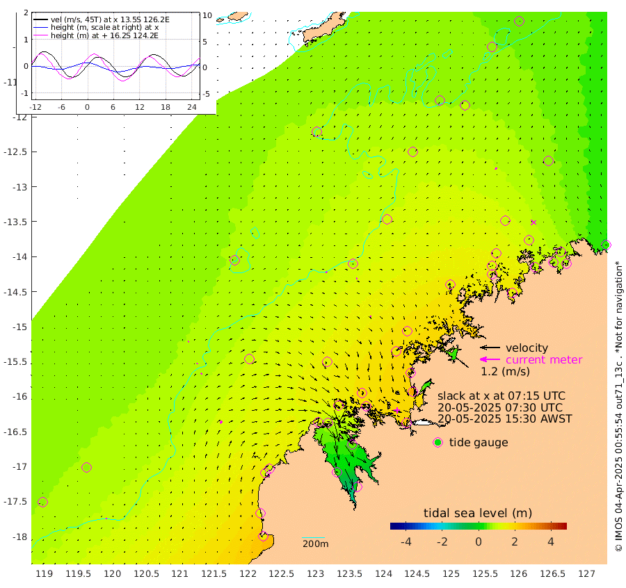 9cm/s -33T +10cm/s rms + 1cm/s 1T. NWSBRW 205m 6cm/s 11T +11cm/s rms + 6cm/s -110T. NWSROW 199m 5cm/s 123T +5cm/s rms + 2cm/s 65T. CAM050 58m 4cm/s 62T +12cm/s rms + 5cm/s 92T. CAM100 99m 3cm/s 46T +7cm/s rms + 1cm/s -85T. KIM400 396m 4cm/s 58T +9cm/s rms + 5cm/s -119T. KIM200 208m 7cm/s 50T +11cm/s rms + 5cm/s -147T. KIM100 99m 17cm/s 35T +8cm/s rms + 3cm/s -103T. KIM050 59m 10cm/s 16T +4cm/s rms + 2cm/s 23T. TIMORS88 91m 73cm Imperieuse Reef 72cm Mermaid Reef 163cm Broome 114cm Cape Baskerville 118cm Red Bluff 127cm Cape Boileau 69cm Scott Reef (WA) 78cm Ashmore Reef 138cm Karrakatta Bay 117cm Sunday Island 35cm Valentine Island -9cm Derby 59cm Port Usborne 140cm Bedford Islands 182cm Yampi Sound (Koolan Island) 182cm Macleay Island 124cm Adele Island 79cm Browse Island 220cm Shale Island 258cm Lizard Island 199cm Hall Point 164cm Degerando Island 157cm White Island 88cm Skua No. 4 Well 93cm Jabiru 134cm Maret Island 119cm Baudin Island 133cm Cape Voltaire (Krait Bay) 64cm Dillon Shoal 52cm Laminaria 137cm Port Warrender 99cm Troughton Island 119cm Cassini Island 91cm West Holothuria Reef Offshore 100cm Jar Island 101cm Lynher Bank 117cm Heywood Shoal 75cm Pee Shoal 67cm Van Cloon Shoal 75cm Carronade Island 77cm Guy Point 88cm Napier Broome Bay 37cm Lesueur Island