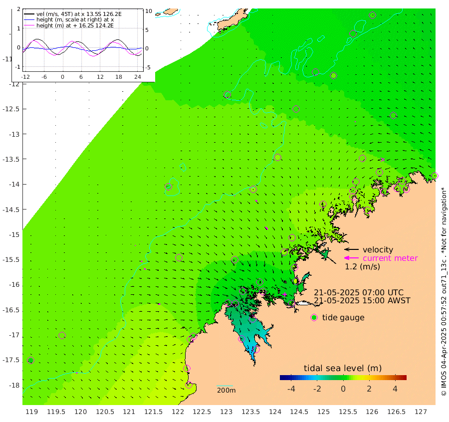 2cm/s 89T +10cm/s rms + 1cm/s 1T. NWSBRW 205m 10cm/s 127T +11cm/s rms + 6cm/s -110T. NWSROW 199m 26cm/s 144T +5cm/s rms + 2cm/s 65T. CAM050 58m 17cm/s 139T +12cm/s rms + 5cm/s 92T. CAM100 99m 4cm/s 107T +7cm/s rms + 1cm/s -85T. KIM400 396m 8cm/s 117T +9cm/s rms + 5cm/s -119T. KIM200 208m 15cm/s 125T +11cm/s rms + 5cm/s -147T. KIM100 99m 19cm/s 96T +8cm/s rms + 3cm/s -103T. KIM050 59m 5cm/s -87T +4cm/s rms + 2cm/s 23T. TIMORS88 91m 13cm Imperieuse Reef 47cm Mermaid Reef 88cm Broome 58cm Cape Baskerville 39cm Red Bluff 75cm Cape Boileau 44cm Scott Reef (WA) 34cm Ashmore Reef 8cm Karrakatta Bay -1cm Sunday Island -127cm Valentine Island -146cm Derby -87cm Port Usborne 26cm Bedford Islands 49cm Yampi Sound (Koolan Island) 27cm Macleay Island 37cm Adele Island 66cm Browse Island 42cm Shale Island 94cm Lizard Island 75cm Hall Point 65cm Degerando Island 73cm White Island 41cm Skua No. 4 Well 49cm Jabiru 66cm Maret Island 57cm Baudin Island 75cm Cape Voltaire (Krait Bay) 19cm Dillon Shoal 33cm Laminaria 70cm Port Warrender 46cm Troughton Island 58cm Cassini Island 47cm West Holothuria Reef Offshore 57cm Jar Island 58cm Lynher Bank 69cm Heywood Shoal 29cm Pee Shoal 38cm Van Cloon Shoal 60cm Carronade Island 62cm Guy Point 74cm Napier Broome Bay 48cm Lesueur Island