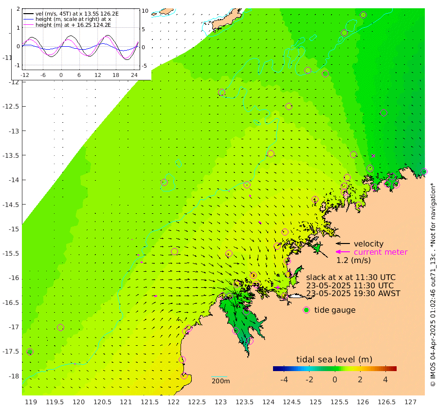 4cm/s 82T +10cm/s rms + 1cm/s 1T. NWSBRW 205m 6cm/s 97T +11cm/s rms + 6cm/s -110T. NWSROW 199m 26cm/s 134T +5cm/s rms + 2cm/s 65T. CAM050 58m 16cm/s 126T +12cm/s rms + 5cm/s 92T. CAM100 99m 6cm/s 83T +7cm/s rms + 1cm/s -85T. KIM400 396m 10cm/s 97T +9cm/s rms + 5cm/s -119T. KIM200 208m 15cm/s 96T +11cm/s rms + 5cm/s -147T. KIM100 99m 26cm/s 68T +8cm/s rms + 3cm/s -103T. KIM050 59m 1cm/s -102T +4cm/s rms + 2cm/s 23T. TIMORS88 91m 37cm Imperieuse Reef 71cm Mermaid Reef 170cm Broome 120cm Cape Baskerville 119cm Red Bluff 126cm Cape Boileau 71cm Scott Reef (WA) 64cm Ashmore Reef 111cm Karrakatta Bay 93cm Sunday Island -31cm Valentine Island -82cm Derby 2cm Port Usborne 135cm Bedford Islands 160cm Yampi Sound (Koolan Island) 213cm Macleay Island 138cm Adele Island 97cm Browse Island 176cm Shale Island 185cm Lizard Island 77cm Hall Point 149cm Degerando Island 142cm White Island 85cm Skua No. 4 Well 44cm Jabiru 128cm Maret Island 101cm Baudin Island 112cm Cape Voltaire (Krait Bay) 48cm Dillon Shoal 49cm Laminaria 101cm Port Warrender 52cm Troughton Island 104cm Cassini Island 68cm West Holothuria Reef Offshore 45cm Jar Island 91cm Lynher Bank 112cm Heywood Shoal 61cm Pee Shoal 19cm Van Cloon Shoal 13cm Carronade Island 18cm Guy Point 21cm Napier Broome Bay -71cm Lesueur Island