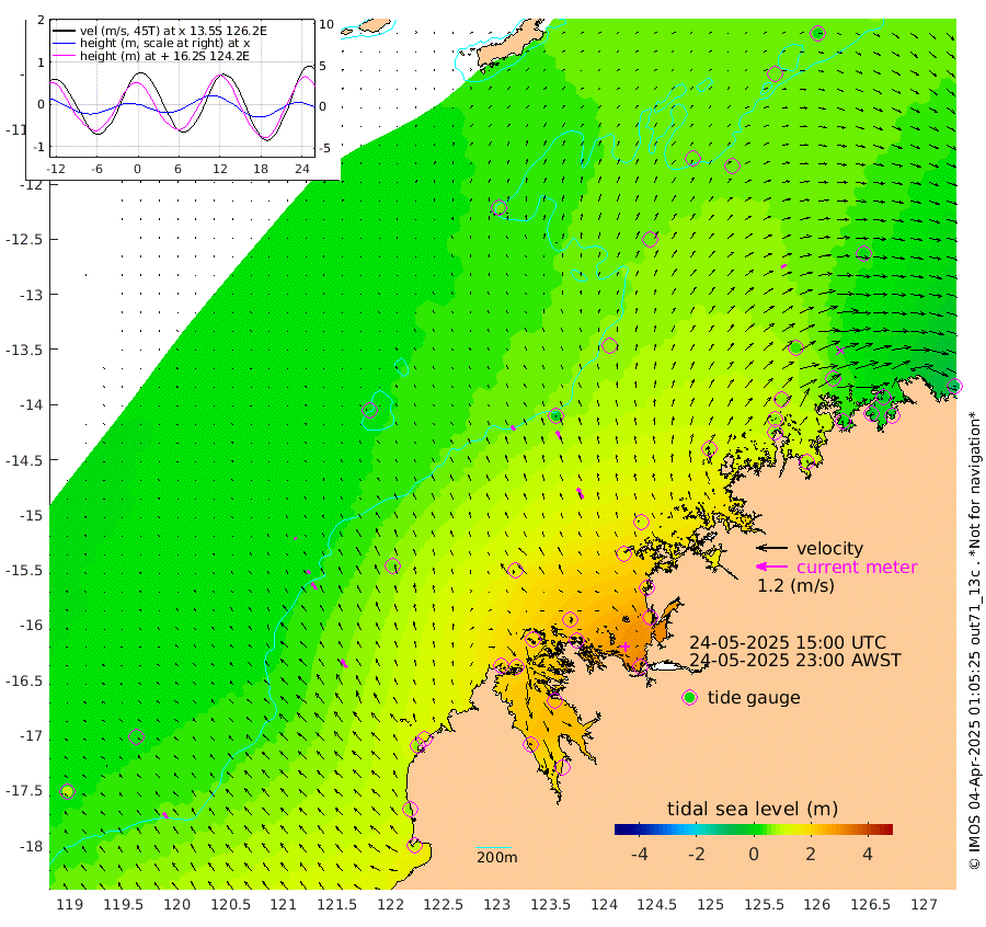 19cm/s -40T +10cm/s rms + 1cm/s 1T. NWSBRW 205m 27cm/s -33T +11cm/s rms + 6cm/s -110T. NWSROW 199m 44cm/s -28T +5cm/s rms + 2cm/s 65T. CAM050 58m 34cm/s -27T +12cm/s rms + 5cm/s 92T. CAM100 99m 8cm/s -34T +7cm/s rms + 1cm/s -85T. KIM400 396m 16cm/s -39T +9cm/s rms + 5cm/s -119T. KIM200 208m 30cm/s -33T +11cm/s rms + 5cm/s -147T. KIM100 99m 36cm/s -36T +8cm/s rms + 3cm/s -103T. KIM050 59m 22cm/s 64T +4cm/s rms + 2cm/s 23T. TIMORS88 91m 84cm Imperieuse Reef 23cm Mermaid Reef 104cm Broome 74cm Cape Baskerville 150cm Red Bluff 73cm Cape Boileau 21cm Scott Reef (WA) 49cm Ashmore Reef 205cm Karrakatta Bay 201cm Sunday Island 243cm Valentine Island 221cm Derby 228cm Port Usborne 191cm Bedford Islands 206cm Yampi Sound (Koolan Island) 223cm Macleay Island 124cm Adele Island -21cm Browse Island 273cm Shale Island 231cm Lizard Island 185cm Hall Point 151cm Degerando Island 111cm White Island 49cm Skua No. 4 Well 46cm Jabiru 85cm Maret Island 68cm Baudin Island 65cm Cape Voltaire (Krait Bay) 56cm Dillon Shoal 12cm Laminaria 78cm Port Warrender 30cm Troughton Island 65cm Cassini Island 34cm West Holothuria Reef Offshore 24cm Jar Island 51cm Lynher Bank 67cm Heywood Shoal 49cm Pee Shoal 12cm Van Cloon Shoal -23cm Carronade Island -23cm Guy Point -24cm Napier Broome Bay -94cm Lesueur Island