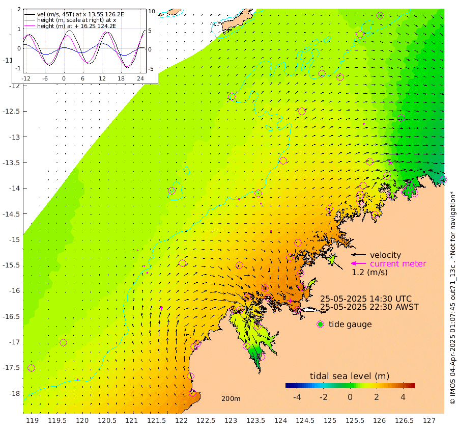 15cm/s -21T +10cm/s rms + 1cm/s 1T. NWSBRW 205m 17cm/s -12T +11cm/s rms + 6cm/s -110T. NWSROW 199m 9cm/s 8T +5cm/s rms + 2cm/s 65T. CAM050 58m 12cm/s 9T +12cm/s rms + 5cm/s 92T. CAM100 99m 6cm/s 28T +7cm/s rms + 1cm/s -85T. KIM400 396m 9cm/s 18T +9cm/s rms + 5cm/s -119T. KIM200 208m 17cm/s 10T +11cm/s rms + 5cm/s -147T. KIM100 99m 33cm/s 13T +8cm/s rms + 3cm/s -103T. KIM050 59m 15cm/s 72T +4cm/s rms + 2cm/s 23T. TIMORS88 91m 98cm Imperieuse Reef 89cm Mermaid Reef 254cm Broome 180cm Cape Baskerville 242cm Red Bluff 178cm Cape Boileau 83cm Scott Reef (WA) 101cm Ashmore Reef 264cm Karrakatta Bay 243cm Sunday Island 129cm Valentine Island 60cm Derby 155cm Port Usborne 289cm Bedford Islands 320cm Yampi Sound (Koolan Island) 363cm Macleay Island 227cm Adele Island 78cm Browse Island 385cm Shale Island 353cm Lizard Island 265cm Hall Point 270cm Degerando Island 233cm White Island 112cm Skua No. 4 Well 79cm Jabiru 197cm Maret Island 165cm Baudin Island 164cm Cape Voltaire (Krait Bay) 77cm Dillon Shoal 54cm Laminaria 169cm Port Warrender 76cm Troughton Island 155cm Cassini Island 95cm West Holothuria Reef Offshore 69cm Jar Island 135cm Lynher Bank 155cm Heywood Shoal 90cm Pee Shoal 29cm Van Cloon Shoal 2cm Carronade Island 4cm Guy Point 4cm Napier Broome Bay -124cm Lesueur Island