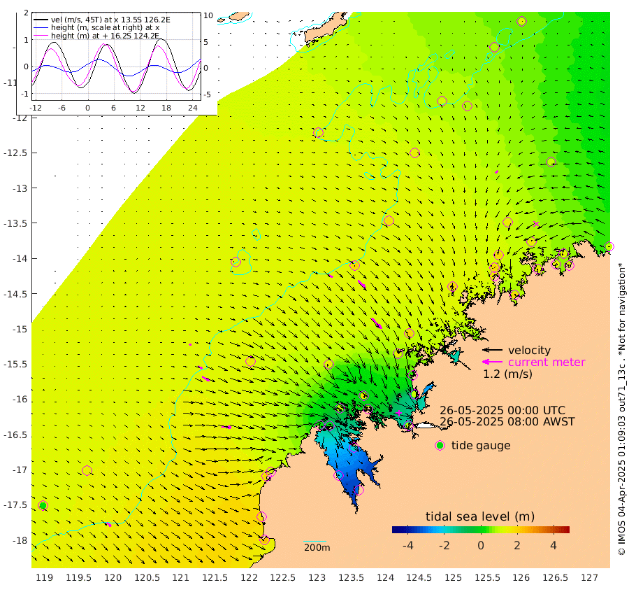 28cm/s 120T +10cm/s rms + 1cm/s 1T. NWSBRW 205m 33cm/s 130T +11cm/s rms + 6cm/s -110T. NWSROW 199m 85cm/s 138T +5cm/s rms + 2cm/s 65T. CAM050 58m 61cm/s 133T +12cm/s rms + 5cm/s 92T. CAM100 99m 14cm/s 108T +7cm/s rms + 1cm/s -85T. KIM400 396m 29cm/s 113T +9cm/s rms + 5cm/s -119T. KIM200 208m 51cm/s 118T +11cm/s rms + 5cm/s -147T. KIM100 99m 61cm/s 96T +8cm/s rms + 3cm/s -103T. KIM050 59m 20cm/s -136T +4cm/s rms + 2cm/s 23T. TIMORS88 91m 23cm Imperieuse Reef 139cm Mermaid Reef 228cm Broome 183cm Cape Baskerville 109cm Red Bluff 173cm Cape Boileau 133cm Scott Reef (WA) 121cm Ashmore Reef 29cm Karrakatta Bay 4cm Sunday Island -234cm Valentine Island -315cm Derby -188cm Port Usborne 100cm Bedford Islands 123cm Yampi Sound (Koolan Island) 167cm Macleay Island 156cm Adele Island 199cm Browse Island 77cm Shale Island 100cm Lizard Island 44cm Hall Point 157cm Degerando Island 185cm White Island 140cm Skua No. 4 Well 85cm Jabiru 201cm Maret Island 182cm Baudin Island 192cm Cape Voltaire (Krait Bay) 80cm Dillon Shoal 124cm Laminaria 186cm Port Warrender 156cm Troughton Island 188cm Cassini Island 156cm West Holothuria Reef Offshore 136cm Jar Island 151cm Lynher Bank 178cm Heywood Shoal 117cm Pee Shoal 96cm Van Cloon Shoal 136cm Carronade Island 145cm Guy Point 136cm Napier Broome Bay 102cm Lesueur Island