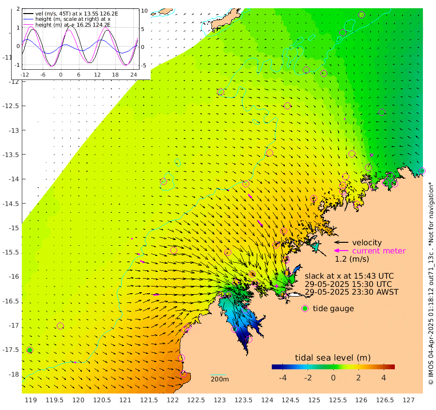 11cm/s 96T +10cm/s rms + 1cm/s 1T. NWSBRW 205m 20cm/s 117T +11cm/s rms + 6cm/s -110T. NWSROW 199m 64cm/s 142T +5cm/s rms + 2cm/s 65T. CAM050 58m 45cm/s 135T +12cm/s rms + 5cm/s 92T. CAM100 99m 12cm/s 100T +7cm/s rms + 1cm/s -85T. KIM400 396m 24cm/s 105T +9cm/s rms + 5cm/s -119T. KIM200 208m 40cm/s 109T +11cm/s rms + 5cm/s -147T. KIM100 99m 50cm/s 80T +8cm/s rms + 3cm/s -103T. KIM050 59m 15cm/s -140T +4cm/s rms + 2cm/s 23T. TIMORS88 91m 21cm Imperieuse Reef 118cm Mermaid Reef 308cm Broome 219cm Cape Baskerville 228cm Red Bluff 202cm Cape Boileau 101cm Scott Reef (WA) 87cm Ashmore Reef 138cm Karrakatta Bay 95cm Sunday Island -206cm Valentine Island -328cm Derby -147cm Port Usborne 217cm Bedford Islands 256cm Yampi Sound (Koolan Island) 289cm Macleay Island 207cm Adele Island 172cm Browse Island 261cm Shale Island 253cm Lizard Island 287cm Hall Point 251cm Degerando Island 259cm White Island 98cm Skua No. 4 Well 53cm Jabiru 223cm Maret Island 198cm Baudin Island 187cm Cape Voltaire (Krait Bay) 19cm Dillon Shoal 54cm Laminaria 187cm Port Warrender 62cm Troughton Island 164cm Cassini Island 102cm West Holothuria Reef Offshore 69cm Jar Island 155cm Lynher Bank 165cm Heywood Shoal 53cm Pee Shoal -1cm Van Cloon Shoal 15cm Carronade Island 17cm Guy Point 9cm Napier Broome Bay -117cm Lesueur Island
