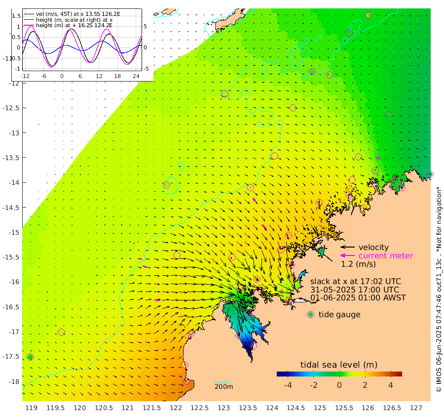 6cm/s 74T +10cm/s rms + 1cm/s 1T. NWSBRW 205m 14cm/s 112T +11cm/s rms + 6cm/s -110T. NWSROW 199m 46cm/s 142T +5cm/s rms + 2cm/s 65T. CAM050 58m 32cm/s 134T +12cm/s rms + 5cm/s 92T. CAM100 99m 9cm/s 97T +7cm/s rms + 1cm/s -85T. KIM400 396m 19cm/s 102T +9cm/s rms + 5cm/s -119T. KIM200 208m 31cm/s 106T +11cm/s rms + 5cm/s -147T. KIM100 99m 38cm/s 75T +8cm/s rms + 3cm/s -103T. KIM050 59m 7cm/s -140T +4cm/s rms + 2cm/s 23T. TIMORS88 91m 26cm Imperieuse Reef 100cm Mermaid Reef 261cm Broome 183cm Cape Baskerville 194cm Red Bluff 163cm Cape Boileau 82cm Scott Reef (WA) 76cm Ashmore Reef 128cm Karrakatta Bay 90cm Sunday Island -146cm Valentine Island -249cm Derby -98cm Port Usborne 189cm Bedford Islands 232cm Yampi Sound (Koolan Island) 247cm Macleay Island 174cm Adele Island 136cm Browse Island 250cm Shale Island 244cm Lizard Island 315cm Hall Point 220cm Degerando Island 229cm White Island 80cm Skua No. 4 Well 54cm Jabiru 190cm Maret Island 171cm Baudin Island 161cm Cape Voltaire (Krait Bay) 17cm Dillon Shoal 47cm Laminaria 166cm Port Warrender 59cm Troughton Island 138cm Cassini Island 89cm West Holothuria Reef Offshore 67cm Jar Island 133cm Lynher Bank 138cm Heywood Shoal 43cm Pee Shoal 1cm Van Cloon Shoal 19cm Carronade Island 20cm Guy Point 9cm Napier Broome Bay -88cm Lesueur Island