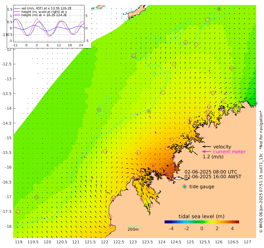 17cm/s -41T +10cm/s rms + 1cm/s 1T. NWSBRW 205m 20cm/s -27T +11cm/s rms + 6cm/s -110T. NWSROW 199m 27cm/s -28T +5cm/s rms + 2cm/s 65T. CAM050 58m 24cm/s -23T +12cm/s rms + 5cm/s 92T. CAM100 99m 5cm/s -15T +7cm/s rms + 1cm/s -85T. KIM400 396m 10cm/s -23T +9cm/s rms + 5cm/s -119T. KIM200 208m 20cm/s -23T +11cm/s rms + 5cm/s -147T. KIM100 99m 27cm/s -14T +8cm/s rms + 3cm/s -103T. KIM050 59m 21cm/s 25T +4cm/s rms + 2cm/s 23T. TIMORS88 91m 98cm Imperieuse Reef 59cm Mermaid Reef 162cm Broome 112cm Cape Baskerville 139cm Red Bluff 129cm Cape Boileau 59cm Scott Reef (WA) 73cm Ashmore Reef 210cm Karrakatta Bay 215cm Sunday Island 194cm Valentine Island 159cm Derby 201cm Port Usborne 205cm Bedford Islands 247cm Yampi Sound (Koolan Island) 263cm Macleay Island 155cm Adele Island 46cm Browse Island 312cm Shale Island 323cm Lizard Island 246cm Hall Point 200cm Degerando Island 183cm White Island 77cm Skua No. 4 Well 85cm Jabiru 129cm Maret Island 120cm Baudin Island 125cm Cape Voltaire (Krait Bay) 76cm Dillon Shoal 33cm Laminaria 152cm Port Warrender 92cm Troughton Island 107cm Cassini Island 87cm West Holothuria Reef Offshore 93cm Jar Island 104cm Lynher Bank 105cm Heywood Shoal 70cm Pee Shoal 62cm Van Cloon Shoal 56cm Carronade Island 60cm Guy Point 66cm Napier Broome Bay 7cm Lesueur Island