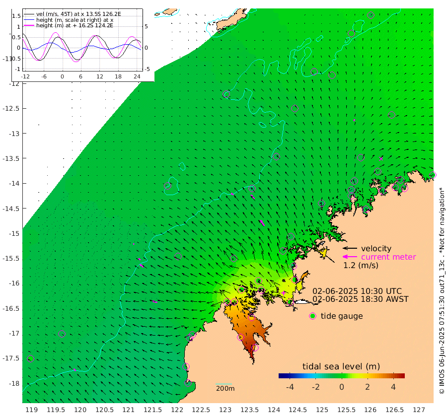 23cm/s -56T +10cm/s rms + 1cm/s 1T. NWSBRW 205m 24cm/s -46T +11cm/s rms + 6cm/s -110T. NWSROW 199m 59cm/s -36T +5cm/s rms + 2cm/s 65T. CAM050 58m 45cm/s -40T +12cm/s rms + 5cm/s 92T. CAM100 99m 10cm/s -62T +7cm/s rms + 1cm/s -85T. KIM400 396m 20cm/s -61T +9cm/s rms + 5cm/s -119T. KIM200 208m 37cm/s -52T +11cm/s rms + 5cm/s -147T. KIM100 99m 41cm/s -74T +8cm/s rms + 3cm/s -103T. KIM050 59m 16cm/s 22T +4cm/s rms + 2cm/s 23T. TIMORS88 91m 28cm Imperieuse Reef -62cm Mermaid Reef -104cm Broome -82cm Cape Baskerville -72cm Red Bluff -67cm Cape Boileau -47cm Scott Reef (WA) -42cm Ashmore Reef 41cm Karrakatta Bay 71cm Sunday Island 259cm Valentine Island 311cm Derby 230cm Port Usborne 6cm Bedford Islands -13cm Yampi Sound (Koolan Island) 6cm Macleay Island -38cm Adele Island -94cm Browse Island 26cm Shale Island 17cm Lizard Island -127cm Hall Point -45cm Degerando Island -74cm White Island -38cm Skua No. 4 Well -29cm Jabiru -84cm Maret Island -85cm Baudin Island -76cm Cape Voltaire (Krait Bay) 0cm Dillon Shoal -49cm Laminaria -69cm Port Warrender -41cm Troughton Island -73cm Cassini Island -59cm West Holothuria Reef Offshore -49cm Jar Island -55cm Lynher Bank -69cm Heywood Shoal -24cm Pee Shoal -24cm Van Cloon Shoal -53cm Carronade Island -51cm Guy Point -50cm Napier Broome Bay -35cm Lesueur Island