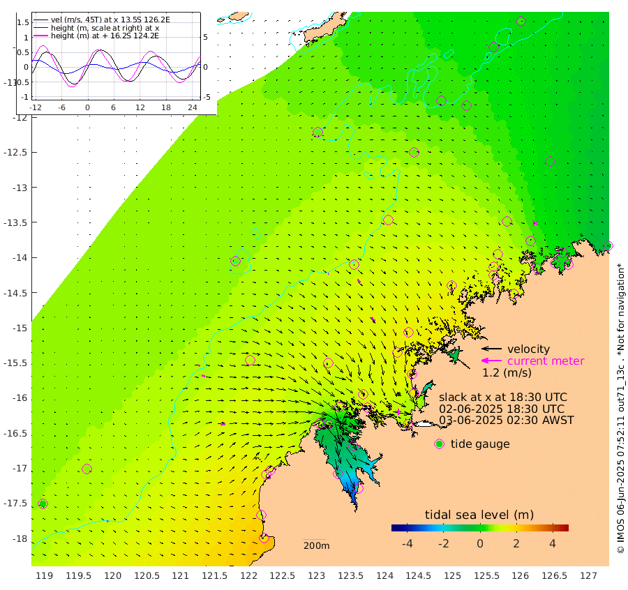 4cm/s 81T +10cm/s rms + 1cm/s 1T. NWSBRW 205m 11cm/s 115T +11cm/s rms + 6cm/s -110T. NWSROW 199m 32cm/s 142T +5cm/s rms + 2cm/s 65T. CAM050 58m 23cm/s 134T +12cm/s rms + 5cm/s 92T. CAM100 99m 7cm/s 96T +7cm/s rms + 1cm/s -85T. KIM400 396m 14cm/s 101T +9cm/s rms + 5cm/s -119T. KIM200 208m 23cm/s 109T +11cm/s rms + 5cm/s -147T. KIM100 99m 26cm/s 76T +8cm/s rms + 3cm/s -103T. KIM050 59m 0cm/s 137T +4cm/s rms + 2cm/s 23T. TIMORS88 91m 18cm Imperieuse Reef 74cm Mermaid Reef 177cm Broome 121cm Cape Baskerville 122cm Red Bluff 103cm Cape Boileau 59cm Scott Reef (WA) 57cm Ashmore Reef 81cm Karrakatta Bay 55cm Sunday Island -108cm Valentine Island -173cm Derby -67cm Port Usborne 117cm Bedford Islands 158cm Yampi Sound (Koolan Island) 161cm Macleay Island 116cm Adele Island 94cm Browse Island 176cm Shale Island 171cm Lizard Island 249cm Hall Point 148cm Degerando Island 162cm White Island 56cm Skua No. 4 Well 42cm Jabiru 130cm Maret Island 120cm Baudin Island 113cm Cape Voltaire (Krait Bay) 17cm Dillon Shoal 43cm Laminaria 116cm Port Warrender 48cm Troughton Island 95cm Cassini Island 67cm West Holothuria Reef Offshore 55cm Jar Island 95cm Lynher Bank 97cm Heywood Shoal 31cm Pee Shoal 5cm Van Cloon Shoal 24cm Carronade Island 26cm Guy Point 14cm Napier Broome Bay -42cm Lesueur Island
