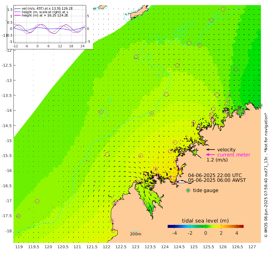 2cm/s 46T +10cm/s rms + 1cm/s 1T. NWSBRW 205m 5cm/s 19T +11cm/s rms + 6cm/s -110T. NWSROW 199m 8cm/s 83T +5cm/s rms + 2cm/s 65T. CAM050 58m 8cm/s 74T +12cm/s rms + 5cm/s 92T. CAM100 99m 4cm/s 68T +7cm/s rms + 1cm/s -85T. KIM400 396m 6cm/s 66T +9cm/s rms + 5cm/s -119T. KIM200 208m 9cm/s 55T +11cm/s rms + 5cm/s -147T. KIM100 99m 15cm/s 40T +8cm/s rms + 3cm/s -103T. KIM050 59m 8cm/s 53T +4cm/s rms + 2cm/s 23T. TIMORS88 91m 50cm Imperieuse Reef 66cm Mermaid Reef 125cm Broome 88cm Cape Baskerville 80cm Red Bluff 78cm Cape Boileau 63cm Scott Reef (WA) 69cm Ashmore Reef 103cm Karrakatta Bay 110cm Sunday Island 67cm Valentine Island 37cm Derby 84cm Port Usborne 126cm Bedford Islands 154cm Yampi Sound (Koolan Island) 186cm Macleay Island 122cm Adele Island 65cm Browse Island 178cm Shale Island 189cm Lizard Island 113cm Hall Point 127cm Degerando Island 133cm White Island 71cm Skua No. 4 Well 46cm Jabiru 109cm Maret Island 93cm Baudin Island 97cm Cape Voltaire (Krait Bay) 53cm Dillon Shoal 62cm Laminaria 106cm Port Warrender 75cm Troughton Island 89cm Cassini Island 76cm West Holothuria Reef Offshore 64cm Jar Island 90cm Lynher Bank 83cm Heywood Shoal 66cm Pee Shoal 41cm Van Cloon Shoal 43cm Carronade Island 46cm Guy Point 37cm Napier Broome Bay 4cm Lesueur Island