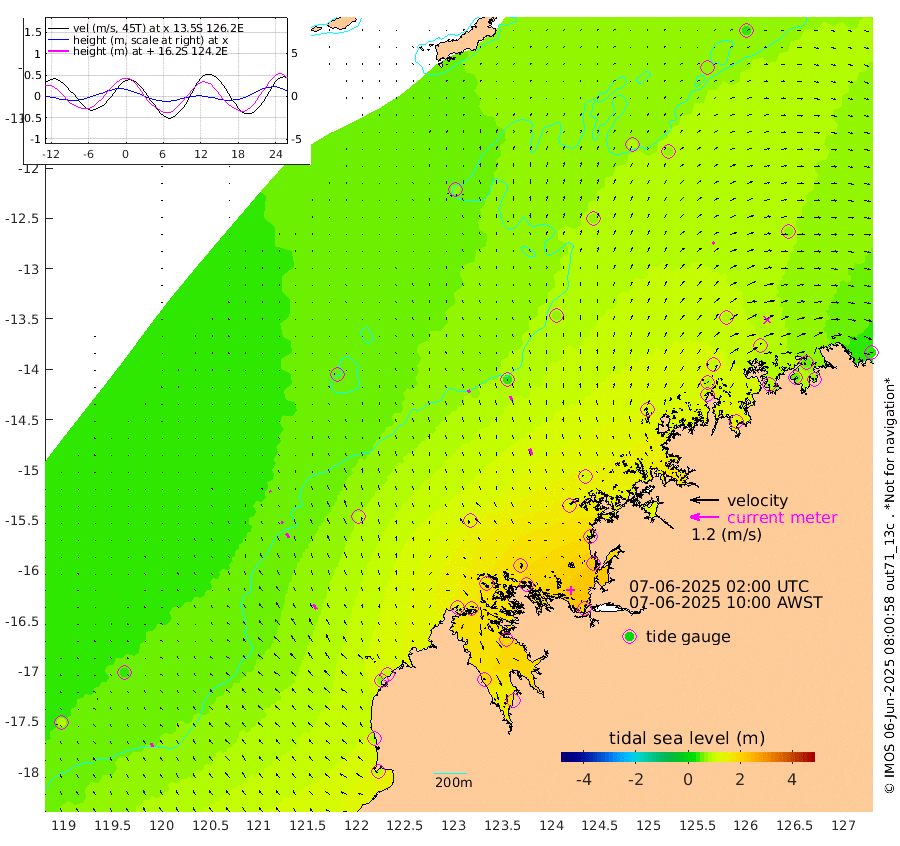 13cm/s -35T +10cm/s rms + 1cm/s 1T. NWSBRW 205m 18cm/s -24T +11cm/s rms + 6cm/s -110T. NWSROW 199m 27cm/s -27T +5cm/s rms + 2cm/s 65T. CAM050 58m 21cm/s -22T +12cm/s rms + 5cm/s 92T. CAM100 99m 5cm/s -26T +7cm/s rms + 1cm/s -85T. KIM400 396m 9cm/s -34T +9cm/s rms + 5cm/s -119T. KIM200 208m 21cm/s -26T +11cm/s rms + 5cm/s -147T. KIM100 99m 23cm/s -32T +8cm/s rms + 3cm/s -103T. KIM050 59m 8cm/s 48T +4cm/s rms + 2cm/s 23T. TIMORS88 91m 82cm Imperieuse Reef 43cm Mermaid Reef 104cm Broome 75cm Cape Baskerville 95cm Red Bluff 83cm Cape Boileau 48cm Scott Reef (WA) 69cm Ashmore Reef 146cm Karrakatta Bay 163cm Sunday Island 189cm Valentine Island 178cm Derby 182cm Port Usborne 159cm Bedford Islands 172cm Yampi Sound (Koolan Island) 198cm Macleay Island 124cm Adele Island 33cm Browse Island 201cm Shale Island 215cm Lizard Island 133cm Hall Point 141cm Degerando Island 120cm White Island 68cm Skua No. 4 Well 68cm Jabiru 106cm Maret Island 84cm Baudin Island 97cm Cape Voltaire (Krait Bay) 67cm Dillon Shoal 34cm Laminaria 122cm Port Warrender 92cm Troughton Island 94cm Cassini Island 76cm West Holothuria Reef Offshore 76cm Jar Island 79cm Lynher Bank 73cm Heywood Shoal 77cm Pee Shoal 67cm Van Cloon Shoal 59cm Carronade Island 57cm Guy Point 62cm Napier Broome Bay 35cm Lesueur Island