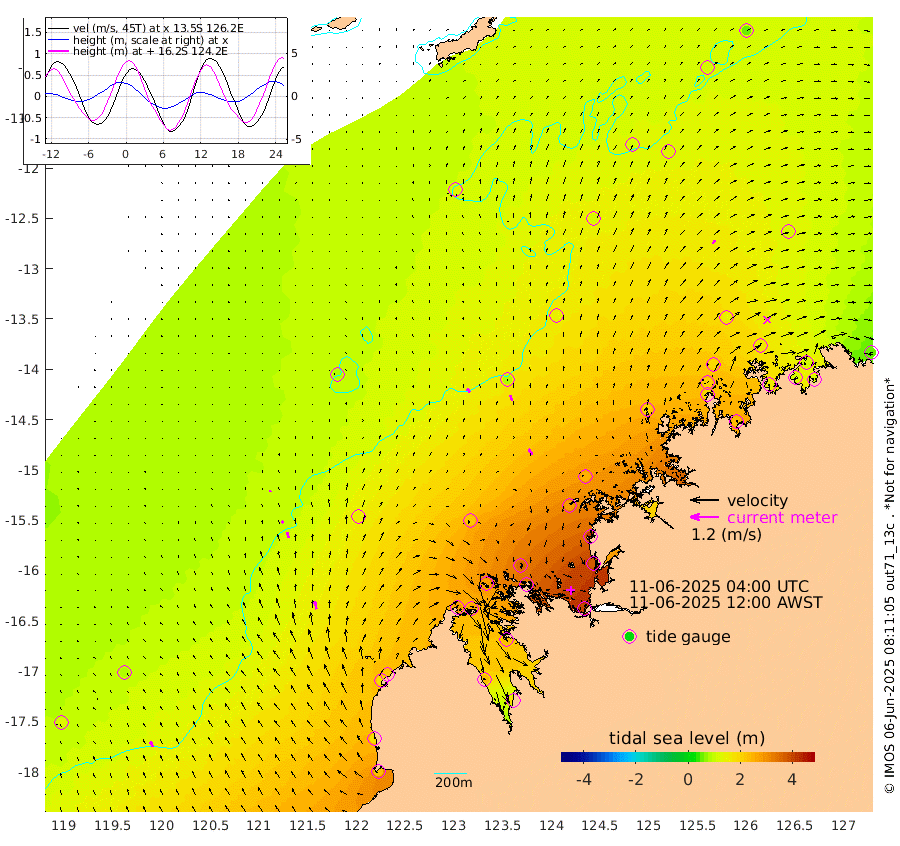 21cm/s -35T +10cm/s rms + 1cm/s 1T. NWSBRW 205m 24cm/s -22T +11cm/s rms + 6cm/s -110T. NWSROW 199m 28cm/s -30T +5cm/s rms + 2cm/s 65T. CAM050 58m 24cm/s -18T +12cm/s rms + 5cm/s 92T. CAM100 99m 7cm/s -15T +7cm/s rms + 1cm/s -85T. KIM400 396m 12cm/s -21T +9cm/s rms + 5cm/s -119T. KIM200 208m 26cm/s -18T +11cm/s rms + 5cm/s -147T. KIM100 99m 35cm/s -13T +8cm/s rms + 3cm/s -103T. KIM050 59m 18cm/s 29T +4cm/s rms + 2cm/s 23T. TIMORS88 91m 131cm Imperieuse Reef 85cm Mermaid Reef 229cm Broome 170cm Cape Baskerville 224cm Red Bluff 178cm Cape Boileau 81cm Scott Reef (WA) 121cm Ashmore Reef 280cm Karrakatta Bay 266cm Sunday Island 234cm Valentine Island 178cm Derby 227cm Port Usborne 270cm Bedford Islands 325cm Yampi Sound (Koolan Island) 347cm Macleay Island 222cm Adele Island 79cm Browse Island 394cm Shale Island 374cm Lizard Island 409cm Hall Point 271cm Degerando Island 250cm White Island 116cm Skua No. 4 Well 133cm Jabiru 205cm Maret Island 197cm Baudin Island 188cm Cape Voltaire (Krait Bay) 113cm Dillon Shoal 50cm Laminaria 231cm Port Warrender 161cm Troughton Island 183cm Cassini Island 147cm West Holothuria Reef Offshore 154cm Jar Island 138cm Lynher Bank 148cm Heywood Shoal 116cm Pee Shoal 111cm Van Cloon Shoal 108cm Carronade Island 106cm Guy Point 114cm Napier Broome Bay 54cm Lesueur Island