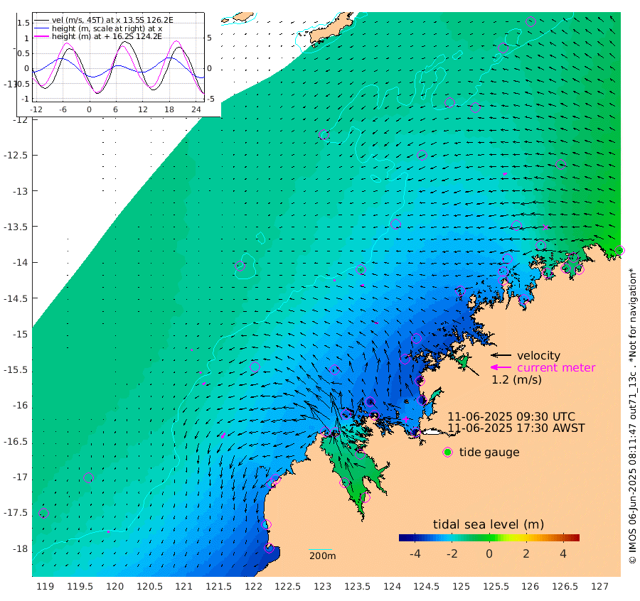 12cm/s 177T +10cm/s rms + 1cm/s 1T. NWSBRW 205m 10cm/s -173T +11cm/s rms + 6cm/s -110T. NWSROW 199m 19cm/s -92T +5cm/s rms + 2cm/s 65T. CAM050 58m 20cm/s -106T +12cm/s rms + 5cm/s 92T. CAM100 99m 7cm/s -125T +7cm/s rms + 1cm/s -85T. KIM400 396m 11cm/s -127T +9cm/s rms + 5cm/s -119T. KIM200 208m 20cm/s -132T +11cm/s rms + 5cm/s -147T. KIM100 99m 36cm/s -146T +8cm/s rms + 3cm/s -103T. KIM050 59m 21cm/s -106T +4cm/s rms + 2cm/s 23T. TIMORS88 91m -126cm Imperieuse Reef -142cm Mermaid Reef -301cm Broome -234cm Cape Baskerville -287cm Red Bluff -220cm Cape Boileau -128cm Scott Reef (WA) -163cm Ashmore Reef -283cm Karrakatta Bay -255cm Sunday Island -134cm Valentine Island -35cm Derby -133cm Port Usborne -303cm Bedford Islands -353cm Yampi Sound (Koolan Island) -381cm Macleay Island -269cm Adele Island -124cm Browse Island -407cm Shale Island -384cm Lizard Island -431cm Hall Point -307cm Degerando Island -295cm White Island -165cm Skua No. 4 Well -157cm Jabiru -264cm Maret Island -247cm Baudin Island -233cm Cape Voltaire (Krait Bay) -132cm Dillon Shoal -122cm Laminaria -259cm Port Warrender -178cm Troughton Island -230cm Cassini Island -181cm West Holothuria Reef Offshore -163cm Jar Island -186cm Lynher Bank -214cm Heywood Shoal -154cm Pee Shoal -115cm Van Cloon Shoal -109cm Carronade Island -114cm Guy Point -108cm Napier Broome Bay -22cm Lesueur Island