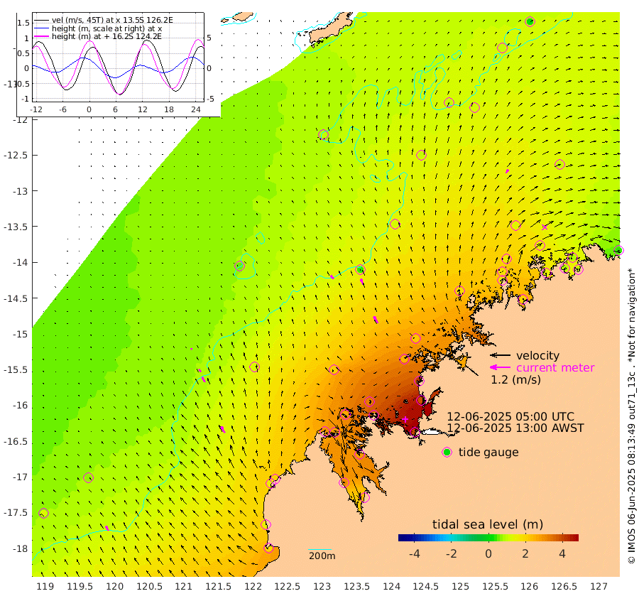 27cm/s -42T +10cm/s rms + 1cm/s 1T. NWSBRW 205m 32cm/s -30T +11cm/s rms + 6cm/s -110T. NWSROW 199m 47cm/s -32T +5cm/s rms + 2cm/s 65T. CAM050 58m 38cm/s -26T +12cm/s rms + 5cm/s 92T. CAM100 99m 9cm/s -32T +7cm/s rms + 1cm/s -85T. KIM400 396m 18cm/s -35T +9cm/s rms + 5cm/s -119T. KIM200 208m 35cm/s -29T +11cm/s rms + 5cm/s -147T. KIM100 99m 43cm/s -29T +8cm/s rms + 3cm/s -103T. KIM050 59m 25cm/s 28T +4cm/s rms + 2cm/s 23T. TIMORS88 91m 135cm Imperieuse Reef 60cm Mermaid Reef 190cm Broome 139cm Cape Baskerville 204cm Red Bluff 149cm Cape Boileau 57cm Scott Reef (WA) 101cm Ashmore Reef 286cm Karrakatta Bay 274cm Sunday Island 302cm Valentine Island 255cm Derby 281cm Port Usborne 260cm Bedford Islands 313cm Yampi Sound (Koolan Island) 325cm Macleay Island 196cm Adele Island 41cm Browse Island 399cm Shale Island 377cm Lizard Island 405cm Hall Point 250cm Degerando Island 222cm White Island 93cm Skua No. 4 Well 119cm Jabiru 171cm Maret Island 167cm Baudin Island 157cm Cape Voltaire (Krait Bay) 101cm Dillon Shoal 26cm Laminaria 203cm Port Warrender 140cm Troughton Island 152cm Cassini Island 121cm West Holothuria Reef Offshore 136cm Jar Island 113cm Lynher Bank 117cm Heywood Shoal 98cm Pee Shoal 98cm Van Cloon Shoal 87cm Carronade Island 84cm Guy Point 94cm Napier Broome Bay 44cm Lesueur Island