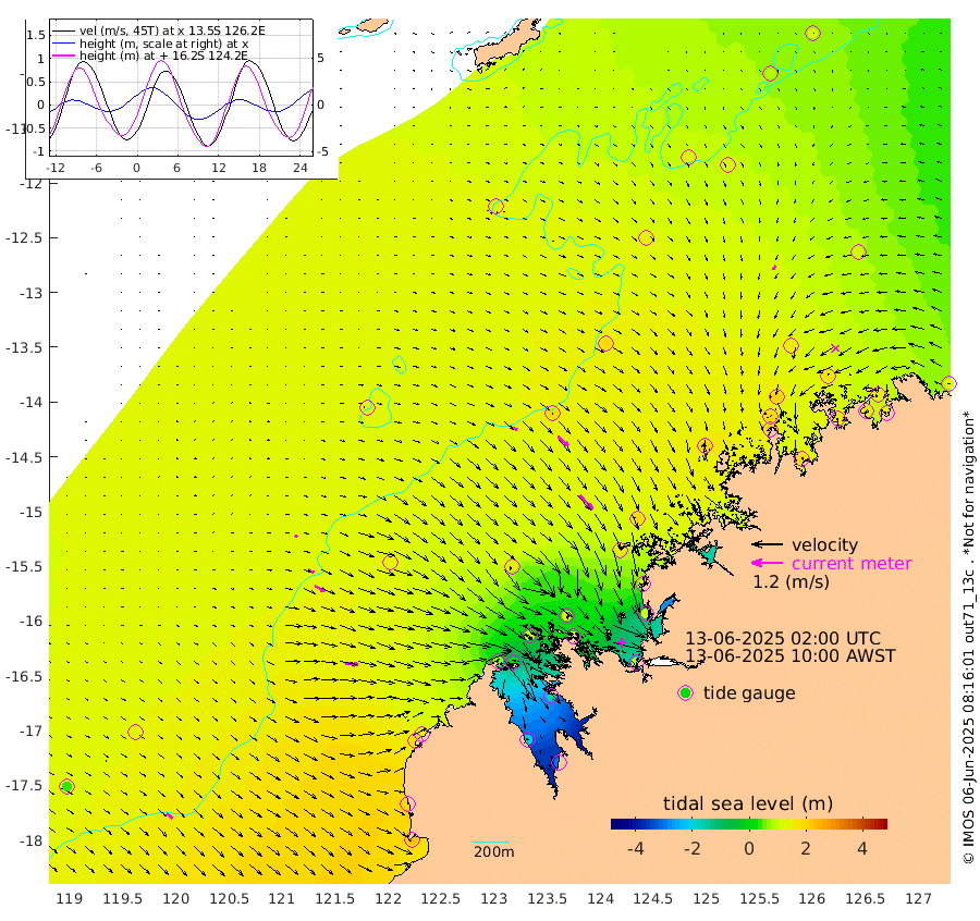 22cm/s 113T +10cm/s rms + 1cm/s 1T. NWSBRW 205m 29cm/s 130T +11cm/s rms + 6cm/s -110T. NWSROW 199m 75cm/s 137T +5cm/s rms + 2cm/s 65T. CAM050 58m 54cm/s 132T +12cm/s rms + 5cm/s 92T. CAM100 99m 12cm/s 107T +7cm/s rms + 1cm/s -85T. KIM400 396m 25cm/s 114T +9cm/s rms + 5cm/s -119T. KIM200 208m 44cm/s 117T +11cm/s rms + 5cm/s -147T. KIM100 99m 53cm/s 95T +8cm/s rms + 3cm/s -103T. KIM050 59m 19cm/s -140T +4cm/s rms + 2cm/s 23T. TIMORS88 91m 38cm Imperieuse Reef 132cm Mermaid Reef 226cm Broome 185cm Cape Baskerville 147cm Red Bluff 184cm Cape Boileau 124cm Scott Reef (WA) 128cm Ashmore Reef 60cm Karrakatta Bay 17cm Sunday Island -209cm Valentine Island -291cm Derby -178cm Port Usborne 102cm Bedford Islands 131cm Yampi Sound (Koolan Island) 153cm Macleay Island 152cm Adele Island 183cm Browse Island 94cm Shale Island 112cm Lizard Island 127cm Hall Point 162cm Degerando Island 182cm White Island 143cm Skua No. 4 Well 112cm Jabiru 206cm Maret Island 194cm Baudin Island 196cm Cape Voltaire (Krait Bay) 89cm Dillon Shoal 117cm Laminaria 192cm Port Warrender 167cm Troughton Island 200cm Cassini Island 162cm West Holothuria Reef Offshore 153cm Jar Island 140cm Lynher Bank 182cm Heywood Shoal 124cm Pee Shoal 116cm Van Cloon Shoal 149cm Carronade Island 154cm Guy Point 159cm Napier Broome Bay 122cm Lesueur Island