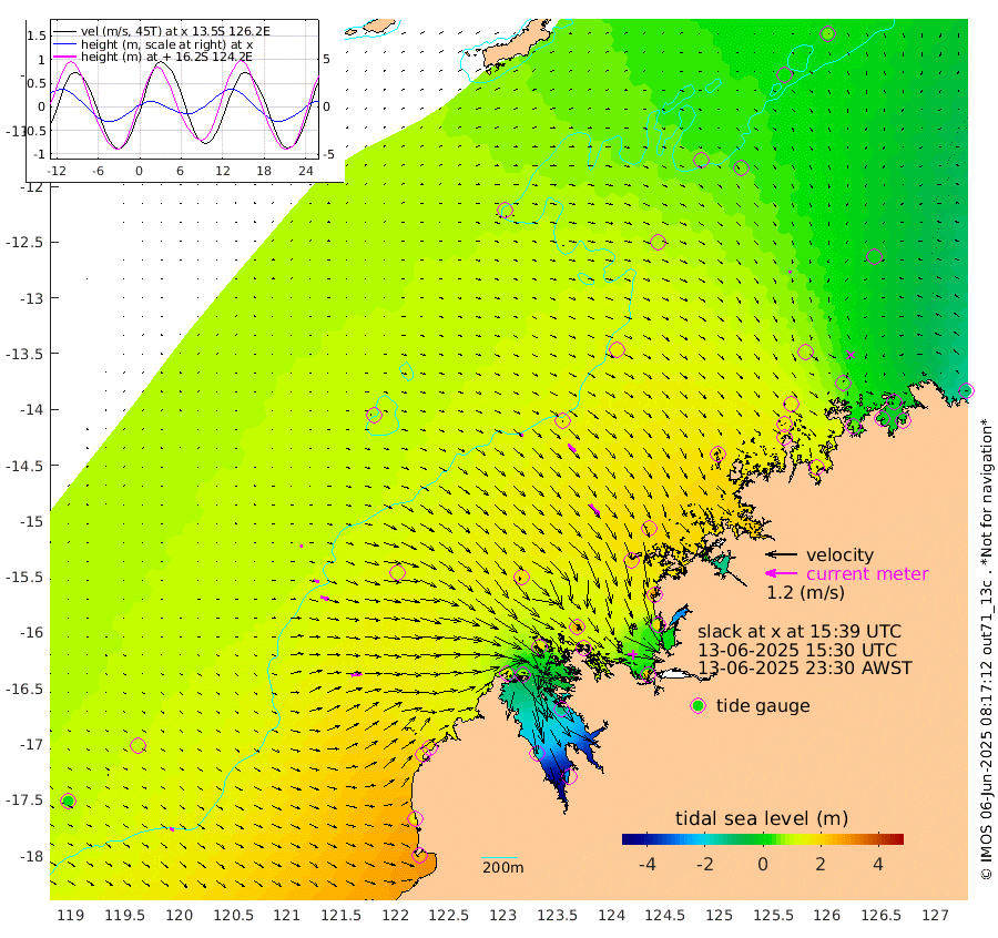 8cm/s 89T +10cm/s rms + 1cm/s 1T. NWSBRW 205m 17cm/s 118T +11cm/s rms + 6cm/s -110T. NWSROW 199m 54cm/s 141T +5cm/s rms + 2cm/s 65T. CAM050 58m 37cm/s 134T +12cm/s rms + 5cm/s 92T. CAM100 99m 10cm/s 98T +7cm/s rms + 1cm/s -85T. KIM400 396m 20cm/s 106T +9cm/s rms + 5cm/s -119T. KIM200 208m 33cm/s 109T +11cm/s rms + 5cm/s -147T. KIM100 99m 41cm/s 80T +8cm/s rms + 3cm/s -103T. KIM050 59m 9cm/s -166T +4cm/s rms + 2cm/s 23T. TIMORS88 91m 19cm Imperieuse Reef 96cm Mermaid Reef 254cm Broome 175cm Cape Baskerville 190cm Red Bluff 160cm Cape Boileau 81cm Scott Reef (WA) 78cm Ashmore Reef 121cm Karrakatta Bay 73cm Sunday Island -190cm Valentine Island -271cm Derby -120cm Port Usborne 169cm Bedford Islands 210cm Yampi Sound (Koolan Island) 242cm Macleay Island 172cm Adele Island 139cm Browse Island 223cm Shale Island 194cm Lizard Island 274cm Hall Point 205cm Degerando Island 204cm White Island 88cm Skua No. 4 Well 58cm Jabiru 185cm Maret Island 161cm Baudin Island 153cm Cape Voltaire (Krait Bay) 25cm Dillon Shoal 50cm Laminaria 135cm Port Warrender 48cm Troughton Island 141cm Cassini Island 82cm West Holothuria Reef Offshore 53cm Jar Island 119cm Lynher Bank 139cm Heywood Shoal 47cm Pee Shoal -5cm Van Cloon Shoal 3cm Carronade Island 2cm Guy Point -2cm Napier Broome Bay -116cm Lesueur Island