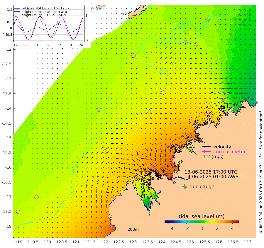 14cm/s -22T +10cm/s rms + 1cm/s 1T. NWSBRW 205m 14cm/s -6T +11cm/s rms + 6cm/s -110T. NWSROW 199m 4cm/s 49T +5cm/s rms + 2cm/s 65T. CAM050 58m 8cm/s 44T +12cm/s rms + 5cm/s 92T. CAM100 99m 5cm/s 45T +7cm/s rms + 1cm/s -85T. KIM400 396m 9cm/s 41T +9cm/s rms + 5cm/s -119T. KIM200 208m 14cm/s 30T +11cm/s rms + 5cm/s -147T. KIM100 99m 29cm/s 21T +8cm/s rms + 3cm/s -103T. KIM050 59m 21cm/s 65T +4cm/s rms + 2cm/s 23T. TIMORS88 91m 83cm Imperieuse Reef 86cm Mermaid Reef 250cm Broome 169cm Cape Baskerville 235cm Red Bluff 155cm Cape Boileau 72cm Scott Reef (WA) 94cm Ashmore Reef 243cm Karrakatta Bay 213cm Sunday Island 79cm Valentine Island 10cm Derby 118cm Port Usborne 261cm Bedford Islands 311cm Yampi Sound (Koolan Island) 333cm Macleay Island 211cm Adele Island 76cm Browse Island 384cm Shale Island 349cm Lizard Island 402cm Hall Point 260cm Degerando Island 236cm White Island 94cm Skua No. 4 Well 84cm Jabiru 190cm Maret Island 165cm Baudin Island 156cm Cape Voltaire (Krait Bay) 58cm Dillon Shoal 50cm Laminaria 160cm Port Warrender 64cm Troughton Island 143cm Cassini Island 89cm West Holothuria Reef Offshore 67cm Jar Island 129cm Lynher Bank 138cm Heywood Shoal 69cm Pee Shoal 15cm Van Cloon Shoal -1cm Carronade Island -4cm Guy Point -7cm Napier Broome Bay -122cm Lesueur Island
