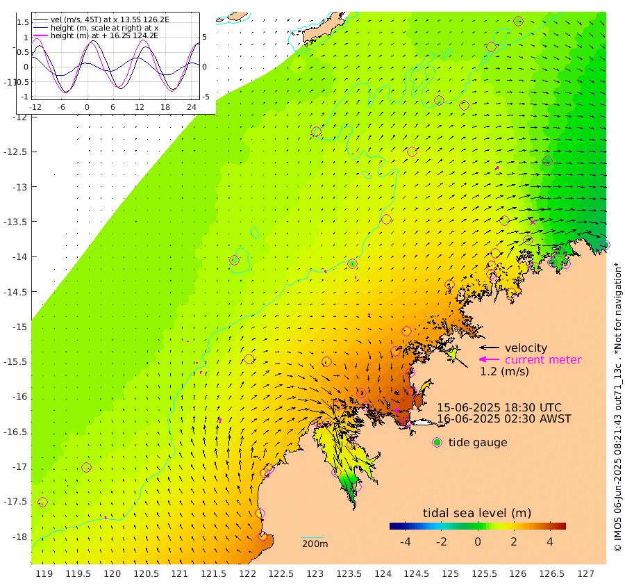 16cm/s -33T +10cm/s rms + 1cm/s 1T. NWSBRW 205m 18cm/s -17T +11cm/s rms + 6cm/s -110T. NWSROW 199m 14cm/s -14T +5cm/s rms + 2cm/s 65T. CAM050 58m 13cm/s 1T +12cm/s rms + 5cm/s 92T. CAM100 99m 5cm/s 24T +7cm/s rms + 1cm/s -85T. KIM400 396m 10cm/s 12T +9cm/s rms + 5cm/s -119T. KIM200 208m 17cm/s 4T +11cm/s rms + 5cm/s -147T. KIM100 99m 29cm/s 6T +8cm/s rms + 3cm/s -103T. KIM050 59m 26cm/s 56T +4cm/s rms + 2cm/s 23T. TIMORS88 91m 93cm Imperieuse Reef 77cm Mermaid Reef 225cm Broome 151cm Cape Baskerville 206cm Red Bluff 134cm Cape Boileau 66cm Scott Reef (WA) 92cm Ashmore Reef 248cm Karrakatta Bay 223cm Sunday Island 128cm Valentine Island 73cm Derby 167cm Port Usborne 259cm Bedford Islands 303cm Yampi Sound (Koolan Island) 320cm Macleay Island 198cm Adele Island 59cm Browse Island 388cm Shale Island 349cm Lizard Island 348cm Hall Point 247cm Degerando Island 220cm White Island 90cm Skua No. 4 Well 77cm Jabiru 173cm Maret Island 155cm Baudin Island 143cm Cape Voltaire (Krait Bay) 60cm Dillon Shoal 49cm Laminaria 145cm Port Warrender 71cm Troughton Island 133cm Cassini Island 84cm West Holothuria Reef Offshore 71cm Jar Island 122cm Lynher Bank 121cm Heywood Shoal 70cm Pee Shoal 22cm Van Cloon Shoal 4cm Carronade Island -1cm Guy Point -3cm Napier Broome Bay -94cm Lesueur Island