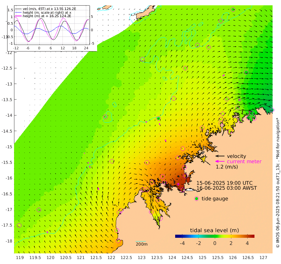 19cm/s -39T +10cm/s rms + 1cm/s 1T. NWSBRW 205m 25cm/s -26T +11cm/s rms + 6cm/s -110T. NWSROW 199m 32cm/s -23T +5cm/s rms + 2cm/s 65T. CAM050 58m 25cm/s -17T +12cm/s rms + 5cm/s 92T. CAM100 99m 6cm/s -4T +7cm/s rms + 1cm/s -85T. KIM400 396m 13cm/s -16T +9cm/s rms + 5cm/s -119T. KIM200 208m 24cm/s -18T +11cm/s rms + 5cm/s -147T. KIM100 99m 32cm/s -15T +8cm/s rms + 3cm/s -103T. KIM050 59m 32cm/s 55T +4cm/s rms + 2cm/s 23T. TIMORS88 91m 97cm Imperieuse Reef 57cm Mermaid Reef 178cm Broome 116cm Cape Baskerville 180cm Red Bluff 101cm Cape Boileau 48cm Scott Reef (WA) 79cm Ashmore Reef 245cm Karrakatta Bay 231cm Sunday Island 200cm Valentine Island 163cm Derby 225cm Port Usborne 242cm Bedford Islands 282cm Yampi Sound (Koolan Island) 296cm Macleay Island 175cm Adele Island 23cm Browse Island 374cm Shale Island 337cm Lizard Island 315cm Hall Point 217cm Degerando Island 187cm White Island 73cm Skua No. 4 Well 66cm Jabiru 138cm Maret Island 123cm Baudin Island 112cm Cape Voltaire (Krait Bay) 58cm Dillon Shoal 39cm Laminaria 118cm Port Warrender 57cm Troughton Island 105cm Cassini Island 66cm West Holothuria Reef Offshore 56cm Jar Island 100cm Lynher Bank 93cm Heywood Shoal 62cm Pee Shoal 18cm Van Cloon Shoal -7cm Carronade Island -12cm Guy Point -14cm Napier Broome Bay -90cm Lesueur Island