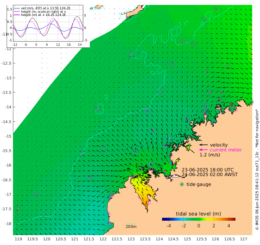 14cm/s -57T +10cm/s rms + 1cm/s 1T. NWSBRW 205m 16cm/s -61T +11cm/s rms + 6cm/s -110T. NWSROW 199m 47cm/s -32T +5cm/s rms + 2cm/s 65T. CAM050 58m 31cm/s -38T +12cm/s rms + 5cm/s 92T. CAM100 99m 8cm/s -75T +7cm/s rms + 1cm/s -85T. KIM400 396m 16cm/s -67T +9cm/s rms + 5cm/s -119T. KIM200 208m 26cm/s -64T +11cm/s rms + 5cm/s -147T. KIM100 99m 34cm/s -90T +8cm/s rms + 3cm/s -103T. KIM050 59m 27cm/s 70T +4cm/s rms + 2cm/s 23T. TIMORS88 91m -12cm Imperieuse Reef -71cm Mermaid Reef -168cm Broome -119cm Cape Baskerville -78cm Red Bluff -124cm Cape Boileau -69cm Scott Reef (WA) -56cm Ashmore Reef -46cm Karrakatta Bay -21cm Sunday Island 131cm Valentine Island 199cm Derby 100cm Port Usborne -89cm Bedford Islands -117cm Yampi Sound (Koolan Island) -162cm Macleay Island -113cm Adele Island -140cm Browse Island -100cm Shale Island -138cm Lizard Island -53cm Hall Point -125cm Degerando Island -143cm White Island -71cm Skua No. 4 Well -32cm Jabiru -134cm Maret Island -115cm Baudin Island -122cm Cape Voltaire (Krait Bay) -18cm Dillon Shoal -30cm Laminaria -123cm Port Warrender -76cm Troughton Island -111cm Cassini Island -80cm West Holothuria Reef Offshore -72cm Jar Island -93cm Lynher Bank -93cm Heywood Shoal -47cm Pee Shoal -31cm Van Cloon Shoal -56cm Carronade Island -56cm Guy Point -60cm Napier Broome Bay -7cm Lesueur Island