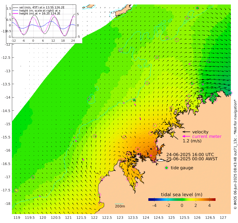 20cm/s -39T +10cm/s rms + 1cm/s 1T. NWSBRW 205m 27cm/s -31T +11cm/s rms + 6cm/s -110T. NWSROW 199m 39cm/s -22T +5cm/s rms + 2cm/s 65T. CAM050 58m 31cm/s -21T +12cm/s rms + 5cm/s 92T. CAM100 99m 6cm/s -20T +7cm/s rms + 1cm/s -85T. KIM400 396m 15cm/s -30T +9cm/s rms + 5cm/s -119T. KIM200 208m 28cm/s -27T +11cm/s rms + 5cm/s -147T. KIM100 99m 34cm/s -25T +8cm/s rms + 3cm/s -103T. KIM050 59m 33cm/s 66T +4cm/s rms + 2cm/s 23T. TIMORS88 91m 87cm Imperieuse Reef 36cm Mermaid Reef 137cm Broome 95cm Cape Baskerville 170cm Red Bluff 86cm Cape Boileau 33cm Scott Reef (WA) 58cm Ashmore Reef 230cm Karrakatta Bay 224cm Sunday Island 228cm Valentine Island 198cm Derby 230cm Port Usborne 231cm Bedford Islands 237cm Yampi Sound (Koolan Island) 258cm Macleay Island 148cm Adele Island -9cm Browse Island 314cm Shale Island 268cm Lizard Island 273cm Hall Point 181cm Degerando Island 133cm White Island 59cm Skua No. 4 Well 68cm Jabiru 105cm Maret Island 86cm Baudin Island 75cm Cape Voltaire (Krait Bay) 50cm Dillon Shoal 25cm Laminaria 79cm Port Warrender 23cm Troughton Island 73cm Cassini Island 34cm West Holothuria Reef Offshore 16cm Jar Island 72cm Lynher Bank 74cm Heywood Shoal 52cm Pee Shoal 1cm Van Cloon Shoal -42cm Carronade Island -43cm Guy Point -44cm Napier Broome Bay -126cm Lesueur Island