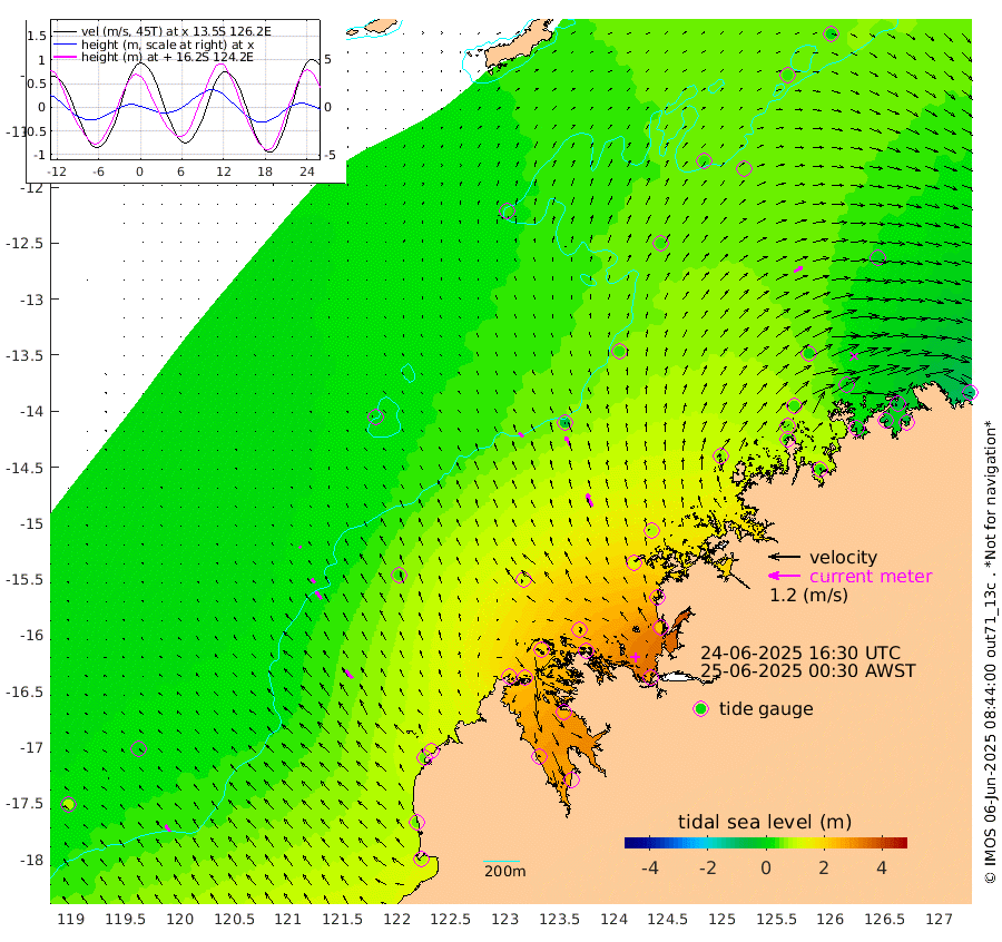 23cm/s -46T +10cm/s rms + 1cm/s 1T. NWSBRW 205m 30cm/s -36T +11cm/s rms + 6cm/s -110T. NWSROW 199m 52cm/s -25T +5cm/s rms + 2cm/s 65T. CAM050 58m 39cm/s -25T +12cm/s rms + 5cm/s 92T. CAM100 99m 8cm/s -35T +7cm/s rms + 1cm/s -85T. KIM400 396m 19cm/s -39T +9cm/s rms + 5cm/s -119T. KIM200 208m 35cm/s -36T +11cm/s rms + 5cm/s -147T. KIM100 99m 38cm/s -40T +8cm/s rms + 3cm/s -103T. KIM050 59m 37cm/s 64T +4cm/s rms + 2cm/s 23T. TIMORS88 91m 81cm Imperieuse Reef 12cm Mermaid Reef 79cm Broome 54cm Cape Baskerville 133cm Red Bluff 45cm Cape Boileau 10cm Scott Reef (WA) 38cm Ashmore Reef 204cm Karrakatta Bay 205cm Sunday Island 261cm Valentine Island 253cm Derby 253cm Port Usborne 191cm Bedford Islands 190cm Yampi Sound (Koolan Island) 198cm Macleay Island 106cm Adele Island -47cm Browse Island 269cm Shale Island 220cm Lizard Island 231cm Hall Point 135cm Degerando Island 85cm White Island 35cm Skua No. 4 Well 53cm Jabiru 61cm Maret Island 48cm Baudin Island 37cm Cape Voltaire (Krait Bay) 42cm Dillon Shoal 12cm Laminaria 42cm Port Warrender 5cm Troughton Island 38cm Cassini Island 11cm West Holothuria Reef Offshore -1cm Jar Island 41cm Lynher Bank 41cm Heywood Shoal 36cm Pee Shoal -4cm Van Cloon Shoal -50cm Carronade Island -52cm Guy Point -53cm Napier Broome Bay -111cm Lesueur Island