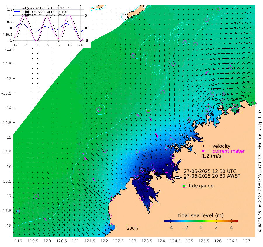 39cm/s 134T +10cm/s rms + 1cm/s 1T. NWSBRW 205m 44cm/s 149T +11cm/s rms + 6cm/s -110T. NWSROW 199m 75cm/s 153T +5cm/s rms + 2cm/s 65T. CAM050 58m 57cm/s 155T +12cm/s rms + 5cm/s 92T. CAM100 99m 11cm/s 147T +7cm/s rms + 1cm/s -85T. KIM400 396m 27cm/s 139T +9cm/s rms + 5cm/s -119T. KIM200 208m 51cm/s 145T +11cm/s rms + 5cm/s -147T. KIM100 99m 55cm/s 141T +8cm/s rms + 3cm/s -103T. KIM050 59m 47cm/s -130T +4cm/s rms + 2cm/s 23T. TIMORS88 91m -167cm Imperieuse Reef -60cm Mermaid Reef -147cm Broome -109cm Cape Baskerville -179cm Red Bluff -119cm Cape Boileau -62cm Scott Reef (WA) -112cm Ashmore Reef -309cm Karrakatta Bay -325cm Sunday Island -415cm Valentine Island -405cm Derby -400cm Port Usborne -288cm Bedford Islands -308cm Yampi Sound (Koolan Island) -304cm Macleay Island -185cm Adele Island 14cm Browse Island -413cm Shale Island -402cm Lizard Island -261cm Hall Point -237cm Degerando Island -181cm White Island -107cm Skua No. 4 Well -116cm Jabiru -144cm Maret Island -129cm Baudin Island -135cm Cape Voltaire (Krait Bay) -124cm Dillon Shoal -63cm Laminaria -166cm Port Warrender -134cm Troughton Island -132cm Cassini Island -106cm West Holothuria Reef Offshore -119cm Jar Island -115cm Lynher Bank -117cm Heywood Shoal -123cm Pee Shoal -108cm Van Cloon Shoal -74cm Carronade Island -73cm Guy Point -84cm Napier Broome Bay -46cm Lesueur Island
