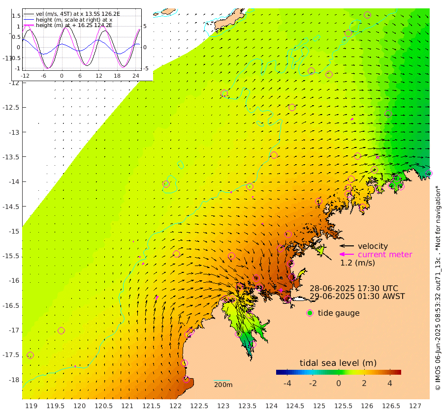 13cm/s -18T +10cm/s rms + 1cm/s 1T. NWSBRW 205m 14cm/s 0T +11cm/s rms + 6cm/s -110T. NWSROW 199m 9cm/s 100T +5cm/s rms + 2cm/s 65T. CAM050 58m 10cm/s 67T +12cm/s rms + 5cm/s 92T. CAM100 99m 6cm/s 54T +7cm/s rms + 1cm/s -85T. KIM400 396m 11cm/s 49T +9cm/s rms + 5cm/s -119T. KIM200 208m 18cm/s 44T +11cm/s rms + 5cm/s -147T. KIM100 99m 35cm/s 31T +8cm/s rms + 3cm/s -103T. KIM050 59m 21cm/s 56T +4cm/s rms + 2cm/s 23T. TIMORS88 91m 100cm Imperieuse Reef 113cm Mermaid Reef 305cm Broome 215cm Cape Baskerville 258cm Red Bluff 196cm Cape Boileau 100cm Scott Reef (WA) 115cm Ashmore Reef 270cm Karrakatta Bay 246cm Sunday Island 97cm Valentine Island -8cm Derby 128cm Port Usborne 323cm Bedford Islands 363cm Yampi Sound (Koolan Island) 393cm Macleay Island 253cm Adele Island 112cm Browse Island 436cm Shale Island 421cm Lizard Island 401cm Hall Point 315cm Degerando Island 288cm White Island 120cm Skua No. 4 Well 98cm Jabiru 235cm Maret Island 204cm Baudin Island 199cm Cape Voltaire (Krait Bay) 65cm Dillon Shoal 66cm Laminaria 215cm Port Warrender 100cm Troughton Island 178cm Cassini Island 117cm West Holothuria Reef Offshore 94cm Jar Island 172cm Lynher Bank 169cm Heywood Shoal 93cm Pee Shoal 32cm Van Cloon Shoal 23cm Carronade Island 23cm Guy Point 15cm Napier Broome Bay -100cm Lesueur Island