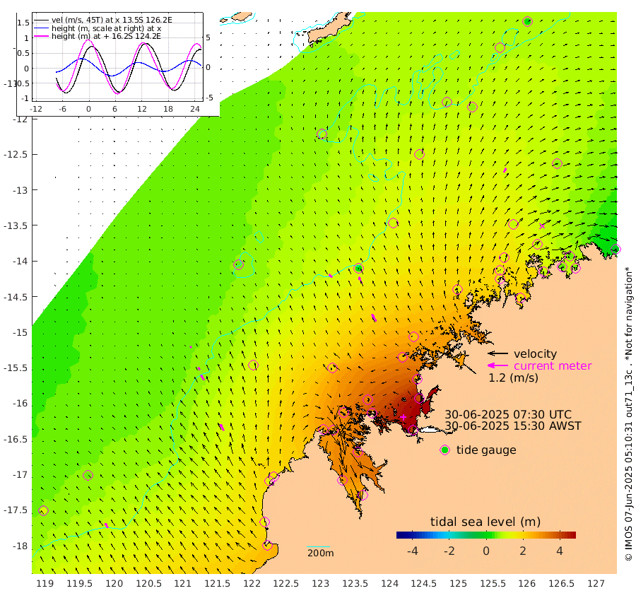26cm/s -46T +10cm/s rms + 1cm/s 1T. NWSBRW 205m 32cm/s -31T +11cm/s rms + 6cm/s -110T. NWSROW 199m 49cm/s -29T +5cm/s rms + 2cm/s 65T. CAM050 58m 41cm/s -26T +12cm/s rms + 5cm/s 92T. CAM100 99m 9cm/s -29T +7cm/s rms + 1cm/s -85T. KIM400 396m 18cm/s -33T +9cm/s rms + 5cm/s -119T. KIM200 208m 36cm/s -30T +11cm/s rms + 5cm/s -147T. KIM100 99m 43cm/s -26T +8cm/s rms + 3cm/s -103T. KIM050 59m 28cm/s 31T +4cm/s rms + 2cm/s 23T. TIMORS88 91m 129cm Imperieuse Reef 56cm Mermaid Reef 186cm Broome 128cm Cape Baskerville 180cm Red Bluff 145cm Cape Boileau 57cm Scott Reef (WA) 82cm Ashmore Reef 279cm Karrakatta Bay 285cm Sunday Island 294cm Valentine Island 254cm Derby 295cm Port Usborne 272cm Bedford Islands 314cm Yampi Sound (Koolan Island) 326cm Macleay Island 187cm Adele Island 28cm Browse Island 406cm Shale Island 403cm Lizard Island 251cm Hall Point 248cm Degerando Island 213cm White Island 84cm Skua No. 4 Well 74cm Jabiru 149cm Maret Island 135cm Baudin Island 141cm Cape Voltaire (Krait Bay) 86cm Dillon Shoal 23cm Laminaria 176cm Port Warrender 100cm Troughton Island 122cm Cassini Island 91cm West Holothuria Reef Offshore 100cm Jar Island 116cm Lynher Bank 115cm Heywood Shoal 80cm Pee Shoal 65cm Van Cloon Shoal 48cm Carronade Island 51cm Guy Point 56cm Napier Broome Bay -16cm Lesueur Island