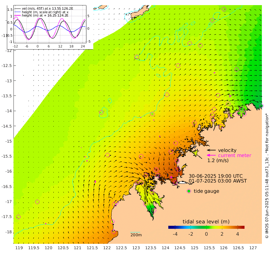 12cm/s -28T +10cm/s rms + 1cm/s 1T. NWSBRW 205m 16cm/s -11T +11cm/s rms + 6cm/s -110T. NWSROW 199m 9cm/s 14T +5cm/s rms + 2cm/s 65T. CAM050 58m 11cm/s 20T +12cm/s rms + 5cm/s 92T. CAM100 99m 5cm/s 36T +7cm/s rms + 1cm/s -85T. KIM400 396m 10cm/s 30T +9cm/s rms + 5cm/s -119T. KIM200 208m 17cm/s 22T +11cm/s rms + 5cm/s -147T. KIM100 99m 31cm/s 17T +8cm/s rms + 3cm/s -103T. KIM050 59m 22cm/s 49T +4cm/s rms + 2cm/s 23T. TIMORS88 91m 103cm Imperieuse Reef 101cm Mermaid Reef 258cm Broome 179cm Cape Baskerville 213cm Red Bluff 164cm Cape Boileau 90cm Scott Reef (WA) 108cm Ashmore Reef 245cm Karrakatta Bay 234cm Sunday Island 134cm Valentine Island 54cm Derby 161cm Port Usborne 285cm Bedford Islands 331cm Yampi Sound (Koolan Island) 348cm Macleay Island 224cm Adele Island 90cm Browse Island 403cm Shale Island 399cm Lizard Island 325cm Hall Point 279cm Degerando Island 260cm White Island 109cm Skua No. 4 Well 85cm Jabiru 204cm Maret Island 178cm Baudin Island 180cm Cape Voltaire (Krait Bay) 72cm Dillon Shoal 67cm Laminaria 201cm Port Warrender 107cm Troughton Island 160cm Cassini Island 114cm West Holothuria Reef Offshore 102cm Jar Island 156cm Lynher Bank 150cm Heywood Shoal 91cm Pee Shoal 47cm Van Cloon Shoal 43cm Carronade Island 43cm Guy Point 36cm Napier Broome Bay -51cm Lesueur Island