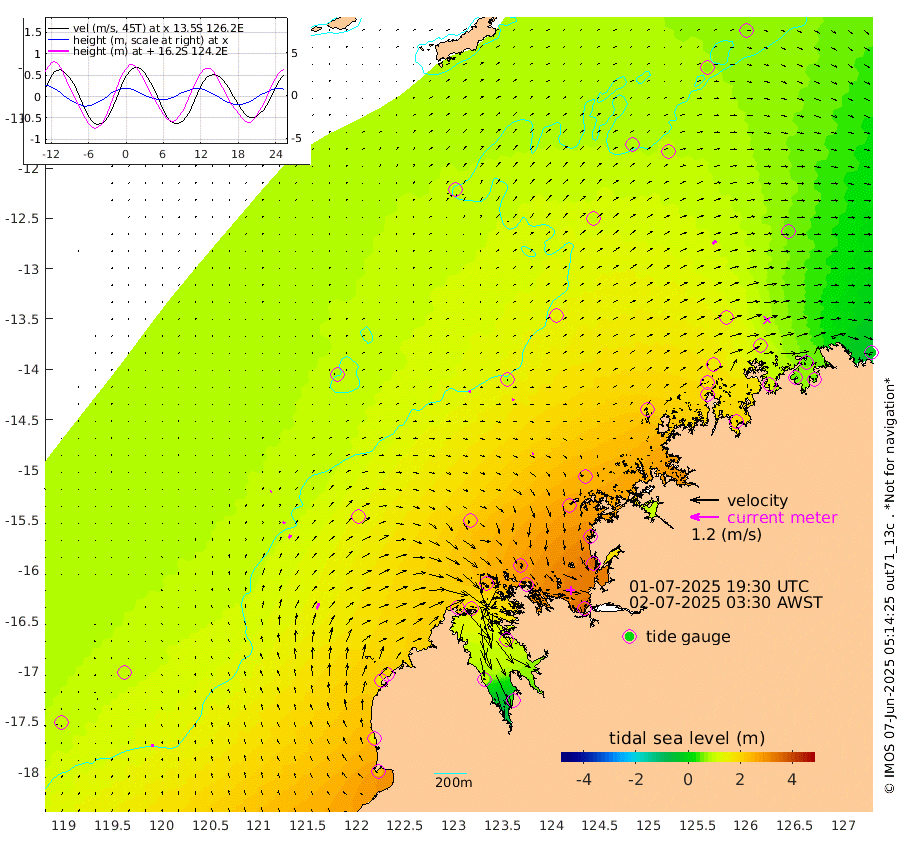 9cm/s -24T +10cm/s rms + 1cm/s 1T. NWSBRW 205m 13cm/s -5T +11cm/s rms + 6cm/s -110T. NWSROW 199m 7cm/s 40T +5cm/s rms + 2cm/s 65T. CAM050 58m 9cm/s 37T +12cm/s rms + 5cm/s 92T. CAM100 99m 5cm/s 43T +7cm/s rms + 1cm/s -85T. KIM400 396m 9cm/s 41T +9cm/s rms + 5cm/s -119T. KIM200 208m 15cm/s 32T +11cm/s rms + 5cm/s -147T. KIM100 99m 28cm/s 23T +8cm/s rms + 3cm/s -103T. KIM050 59m 18cm/s 48T +4cm/s rms + 2cm/s 23T. TIMORS88 91m 93cm Imperieuse Reef 98cm Mermaid Reef 237cm Broome 165cm Cape Baskerville 189cm Red Bluff 151cm Cape Boileau 88cm Scott Reef (WA) 104cm Ashmore Reef 213cm Karrakatta Bay 205cm Sunday Island 101cm Valentine Island 33cm Derby 131cm Port Usborne 247cm Bedford Islands 298cm Yampi Sound (Koolan Island) 311cm Macleay Island 204cm Adele Island 90cm Browse Island 358cm Shale Island 354cm Lizard Island 286cm Hall Point 252cm Degerando Island 243cm White Island 104cm Skua No. 4 Well 79cm Jabiru 189cm Maret Island 169cm Baudin Island 172cm Cape Voltaire (Krait Bay) 73cm Dillon Shoal 69cm Laminaria 191cm Port Warrender 108cm Troughton Island 153cm Cassini Island 115cm West Holothuria Reef Offshore 106cm Jar Island 147cm Lynher Bank 144cm Heywood Shoal 88cm Pee Shoal 53cm Van Cloon Shoal 56cm Carronade Island 57cm Guy Point 49cm Napier Broome Bay -24cm Lesueur Island