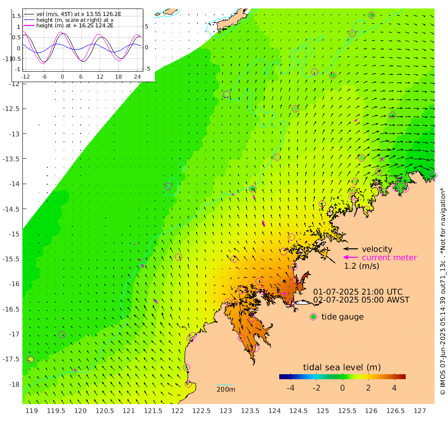 20cm/s -48T +10cm/s rms + 1cm/s 1T. NWSBRW 205m 28cm/s -31T +11cm/s rms + 6cm/s -110T. NWSROW 199m 49cm/s -24T +5cm/s rms + 2cm/s 65T. CAM050 58m 37cm/s -23T +12cm/s rms + 5cm/s 92T. CAM100 99m 7cm/s -25T +7cm/s rms + 1cm/s -85T. KIM400 396m 16cm/s -33T +9cm/s rms + 5cm/s -119T. KIM200 208m 32cm/s -28T +11cm/s rms + 5cm/s -147T. KIM100 99m 36cm/s -36T +8cm/s rms + 3cm/s -103T. KIM050 59m 25cm/s 47T +4cm/s rms + 2cm/s 23T. TIMORS88 91m 98cm Imperieuse Reef 40cm Mermaid Reef 104cm Broome 67cm Cape Baskerville 97cm Red Bluff 59cm Cape Boileau 39cm Scott Reef (WA) 62cm Ashmore Reef 192cm Karrakatta Bay 213cm Sunday Island 286cm Valentine Island 268cm Derby 279cm Port Usborne 201cm Bedford Islands 222cm Yampi Sound (Koolan Island) 234cm Macleay Island 131cm Adele Island -2cm Browse Island 293cm Shale Island 306cm Lizard Island 124cm Hall Point 159cm Degerando Island 135cm White Island 59cm Skua No. 4 Well 45cm Jabiru 92cm Maret Island 73cm Baudin Island 81cm Cape Voltaire (Krait Bay) 56cm Dillon Shoal 37cm Laminaria 103cm Port Warrender 66cm Troughton Island 70cm Cassini Island 54cm West Holothuria Reef Offshore 55cm Jar Island 84cm Lynher Bank 61cm Heywood Shoal 64cm Pee Shoal 37cm Van Cloon Shoal 17cm Carronade Island 16cm Guy Point 11cm Napier Broome Bay -19cm Lesueur Island