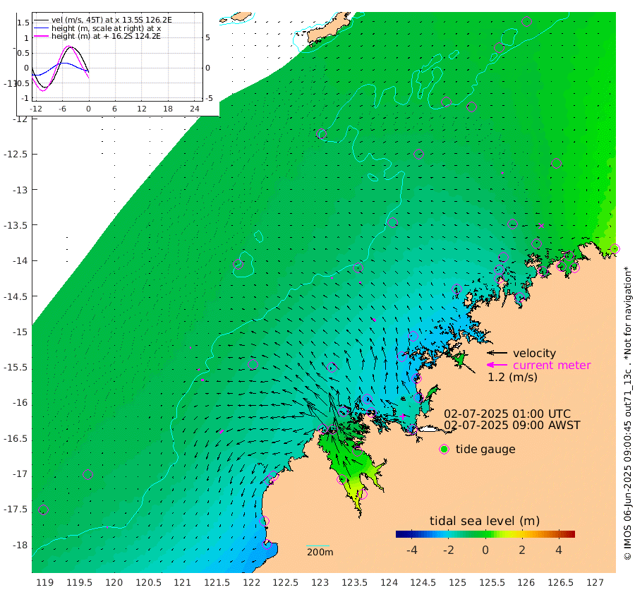 8cm/s 163T +10cm/s rms + 1cm/s 1T. NWSBRW 205m 4cm/s -108T +11cm/s rms + 6cm/s -110T. NWSROW 199m 19cm/s -50T +5cm/s rms + 2cm/s 65T. CAM050 58m 11cm/s -71T +12cm/s rms + 5cm/s 92T. CAM100 99m 5cm/s -116T +7cm/s rms + 1cm/s -85T. KIM400 396m 10cm/s -102T +9cm/s rms + 5cm/s -119T. KIM200 208m 15cm/s -98T +11cm/s rms + 5cm/s -147T. KIM100 99m 27cm/s -132T +8cm/s rms + 3cm/s -103T. KIM050 59m 9cm/s -151T +4cm/s rms + 2cm/s 23T. TIMORS88 91m -53cm Imperieuse Reef -82cm Mermaid Reef -223cm Broome -158cm Cape Baskerville -178cm Red Bluff -152cm Cape Boileau -70cm Scott Reef (WA) -72cm Ashmore Reef -166cm Karrakatta Bay -144cm Sunday Island 22cm Valentine Island 92cm Derby -17cm Port Usborne -190cm Bedford Islands -243cm Yampi Sound (Koolan Island) -254cm Macleay Island -166cm Adele Island -95cm Browse Island -285cm Shale Island -253cm Lizard Island -272cm Hall Point -215cm Degerando Island -216cm White Island -76cm Skua No. 4 Well -55cm Jabiru -160cm Maret Island -155cm Baudin Island -147cm Cape Voltaire (Krait Bay) -51cm Dillon Shoal -39cm Laminaria -161cm Port Warrender -69cm Troughton Island -126cm Cassini Island -91cm West Holothuria Reef Offshore -80cm Jar Island -117cm Lynher Bank -131cm Heywood Shoal -48cm Pee Shoal -24cm Van Cloon Shoal -34cm Carronade Island -39cm Guy Point -30cm Napier Broome Bay 53cm Lesueur Island