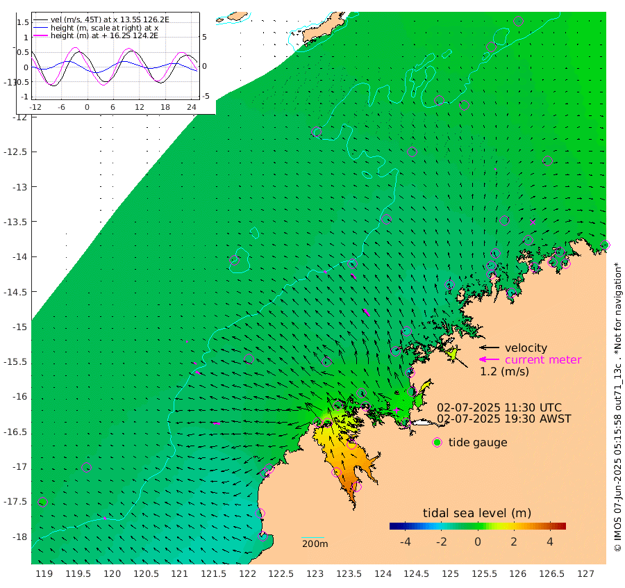 17cm/s -54T +10cm/s rms + 1cm/s 1T. NWSBRW 205m 19cm/s -52T +11cm/s rms + 6cm/s -110T. NWSROW 199m 54cm/s -39T +5cm/s rms + 2cm/s 65T. CAM050 58m 40cm/s -44T +12cm/s rms + 5cm/s 92T. CAM100 99m 8cm/s -73T +7cm/s rms + 1cm/s -85T. KIM400 396m 17cm/s -70T +9cm/s rms + 5cm/s -119T. KIM200 208m 31cm/s -61T +11cm/s rms + 5cm/s -147T. KIM100 99m 40cm/s -86T +8cm/s rms + 3cm/s -103T. KIM050 59m 6cm/s 46T +4cm/s rms + 2cm/s 23T. TIMORS88 91m -11cm Imperieuse Reef -87cm Mermaid Reef -170cm Broome -125cm Cape Baskerville -117cm Red Bluff -119cm Cape Boileau -75cm Scott Reef (WA) -78cm Ashmore Reef -27cm Karrakatta Bay 8cm Sunday Island 211cm Valentine Island 273cm Derby 170cm Port Usborne -59cm Bedford Islands -100cm Yampi Sound (Koolan Island) -91cm Macleay Island -100cm Adele Island -127cm Browse Island -83cm Shale Island -101cm Lizard Island -200cm Hall Point -123cm Degerando Island -143cm White Island -77cm Skua No. 4 Well -59cm Jabiru -142cm Maret Island -134cm Baudin Island -136cm Cape Voltaire (Krait Bay) -36cm Dillon Shoal -65cm Laminaria -137cm Port Warrender -95cm Troughton Island -130cm Cassini Island -104cm West Holothuria Reef Offshore -99cm Jar Island -96cm Lynher Bank -116cm Heywood Shoal -62cm Pee Shoal -60cm Van Cloon Shoal -94cm Carronade Island -90cm Guy Point -97cm Napier Broome Bay -61cm Lesueur Island