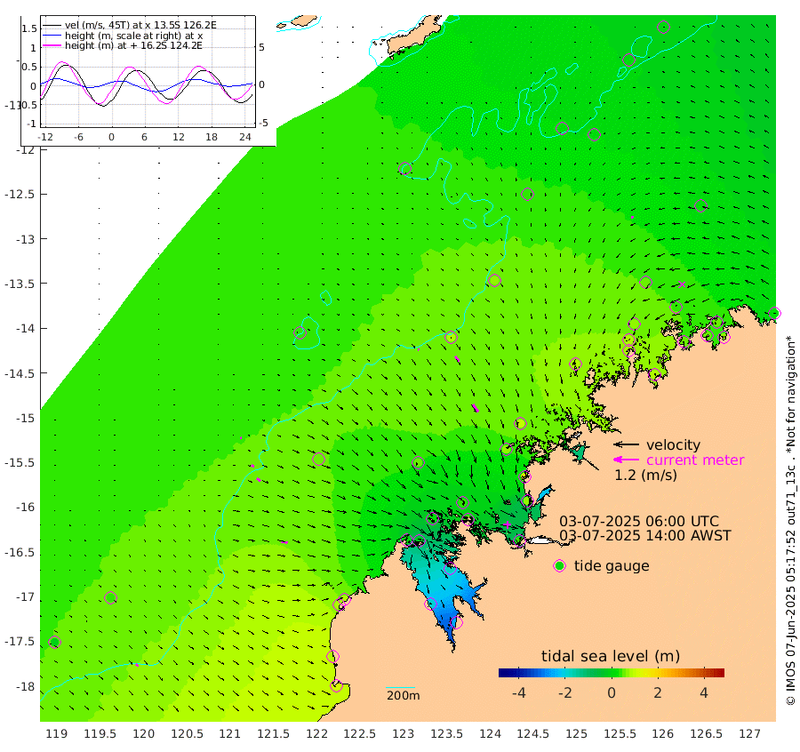 6cm/s 126T +10cm/s rms + 1cm/s 1T. NWSBRW 205m 15cm/s 131T +11cm/s rms + 6cm/s -110T. NWSROW 199m 42cm/s 147T +5cm/s rms + 2cm/s 65T. CAM050 58m 28cm/s 144T +12cm/s rms + 5cm/s 92T. CAM100 99m 6cm/s 113T +7cm/s rms + 1cm/s -85T. KIM400 396m 12cm/s 118T +9cm/s rms + 5cm/s -119T. KIM200 208m 22cm/s 126T +11cm/s rms + 5cm/s -147T. KIM100 99m 29cm/s 100T +8cm/s rms + 3cm/s -103T. KIM050 59m 10cm/s -104T +4cm/s rms + 2cm/s 23T. TIMORS88 91m -8cm Imperieuse Reef 44cm Mermaid Reef 114cm Broome 82cm Cape Baskerville 89cm Red Bluff 90cm Cape Boileau 36cm Scott Reef (WA) 31cm Ashmore Reef 8cm Karrakatta Bay -30cm Sunday Island -188cm Valentine Island -247cm Derby -166cm Port Usborne 18cm Bedford Islands 54cm Yampi Sound (Koolan Island) 38cm Macleay Island 49cm Adele Island 87cm Browse Island 43cm Shale Island 64cm Lizard Island 133cm Hall Point 75cm Degerando Island 92cm White Island 34cm Skua No. 4 Well 14cm Jabiru 83cm Maret Island 83cm Baudin Island 82cm Cape Voltaire (Krait Bay) 2cm Dillon Shoal 13cm Laminaria 85cm Port Warrender 41cm Troughton Island 74cm Cassini Island 54cm West Holothuria Reef Offshore 57cm Jar Island 49cm Lynher Bank 68cm Heywood Shoal 17cm Pee Shoal 26cm Van Cloon Shoal 51cm Carronade Island 47cm Guy Point 61cm Napier Broome Bay 19cm Lesueur Island