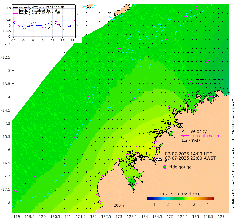 5cm/s -4T +10cm/s rms + 1cm/s 1T. NWSBRW 205m 5cm/s -13T +11cm/s rms + 6cm/s -110T. NWSROW 199m 3cm/s 16T +5cm/s rms + 2cm/s 65T. CAM050 58m 3cm/s 13T +12cm/s rms + 5cm/s 92T. CAM100 99m 2cm/s 54T +7cm/s rms + 1cm/s -85T. KIM400 396m 3cm/s 36T +9cm/s rms + 5cm/s -119T. KIM200 208m 5cm/s 25T +11cm/s rms + 5cm/s -147T. KIM100 99m 10cm/s 12T +8cm/s rms + 3cm/s -103T. KIM050 59m 11cm/s 94T +4cm/s rms + 2cm/s 23T. TIMORS88 91m 16cm Imperieuse Reef 21cm Mermaid Reef 72cm Broome 54cm Cape Baskerville 91cm Red Bluff 44cm Cape Boileau 19cm Scott Reef (WA) 17cm Ashmore Reef 85cm Karrakatta Bay 84cm Sunday Island 81cm Valentine Island 42cm Derby 62cm Port Usborne 96cm Bedford Islands 100cm Yampi Sound (Koolan Island) 138cm Macleay Island 78cm Adele Island 11cm Browse Island 119cm Shale Island 108cm Lizard Island 181cm Hall Point 75cm Degerando Island 68cm White Island 22cm Skua No. 4 Well 34cm Jabiru 50cm Maret Island 35cm Baudin Island 27cm Cape Voltaire (Krait Bay) 11cm Dillon Shoal 12cm Laminaria 34cm Port Warrender -12cm Troughton Island 23cm Cassini Island 10cm West Holothuria Reef Offshore -18cm Jar Island 33cm Lynher Bank 35cm Heywood Shoal 15cm Pee Shoal -24cm Van Cloon Shoal -45cm Carronade Island -40cm Guy Point -50cm Napier Broome Bay -111cm Lesueur Island