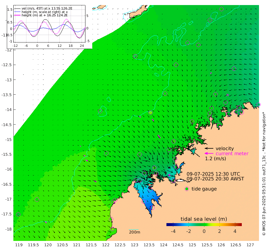 18cm/s 124T +10cm/s rms + 1cm/s 1T. NWSBRW 205m 24cm/s 138T +11cm/s rms + 6cm/s -110T. NWSROW 199m 55cm/s 145T +5cm/s rms + 2cm/s 65T. CAM050 58m 39cm/s 143T +12cm/s rms + 5cm/s 92T. CAM100 99m 9cm/s 118T +7cm/s rms + 1cm/s -85T. KIM400 396m 20cm/s 123T +9cm/s rms + 5cm/s -119T. KIM200 208m 34cm/s 127T +11cm/s rms + 5cm/s -147T. KIM100 99m 36cm/s 111T +8cm/s rms + 3cm/s -103T. KIM050 59m 22cm/s -143T +4cm/s rms + 2cm/s 23T. TIMORS88 91m -53cm Imperieuse Reef 25cm Mermaid Reef 70cm Broome 40cm Cape Baskerville 22cm Red Bluff 31cm Cape Boileau 20cm Scott Reef (WA) -3cm Ashmore Reef -48cm Karrakatta Bay -77cm Sunday Island -229cm Valentine Island -259cm Derby -185cm Port Usborne -24cm Bedford Islands -7cm Yampi Sound (Koolan Island) 32cm Macleay Island 24cm Adele Island 75cm Browse Island -35cm Shale Island -34cm Lizard Island 25cm Hall Point 8cm Degerando Island 30cm White Island 9cm Skua No. 4 Well -11cm Jabiru 34cm Maret Island 21cm Baudin Island 18cm Cape Voltaire (Krait Bay) -32cm Dillon Shoal 6cm Laminaria -13cm Port Warrender -40cm Troughton Island 14cm Cassini Island -6cm West Holothuria Reef Offshore -34cm Jar Island 14cm Lynher Bank 25cm Heywood Shoal -20cm Pee Shoal -54cm Van Cloon Shoal -46cm Carronade Island -47cm Guy Point -51cm Napier Broome Bay -112cm Lesueur Island