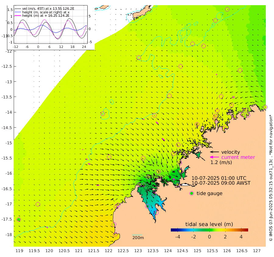 15cm/s 110T +10cm/s rms + 1cm/s 1T. NWSBRW 205m 19cm/s 126T +11cm/s rms + 6cm/s -110T. NWSROW 199m 52cm/s 136T +5cm/s rms + 2cm/s 65T. CAM050 58m 39cm/s 129T +12cm/s rms + 5cm/s 92T. CAM100 99m 9cm/s 103T +7cm/s rms + 1cm/s -85T. KIM400 396m 18cm/s 113T +9cm/s rms + 5cm/s -119T. KIM200 208m 31cm/s 113T +11cm/s rms + 5cm/s -147T. KIM100 99m 38cm/s 90T +8cm/s rms + 3cm/s -103T. KIM050 59m 14cm/s -129T +4cm/s rms + 2cm/s 23T. TIMORS88 91m 45cm Imperieuse Reef 111cm Mermaid Reef 184cm Broome 152cm Cape Baskerville 124cm Red Bluff 149cm Cape Boileau 104cm Scott Reef (WA) 115cm Ashmore Reef 79cm Karrakatta Bay 43cm Sunday Island -101cm Valentine Island -165cm Derby -86cm Port Usborne 94cm Bedford Islands 126cm Yampi Sound (Koolan Island) 164cm Macleay Island 141cm Adele Island 148cm Browse Island 108cm Shale Island 116cm Lizard Island 162cm Hall Point 138cm Degerando Island 158cm White Island 126cm Skua No. 4 Well 113cm Jabiru 174cm Maret Island 169cm Baudin Island 162cm Cape Voltaire (Krait Bay) 89cm Dillon Shoal 103cm Laminaria 161cm Port Warrender 151cm Troughton Island 170cm Cassini Island 143cm West Holothuria Reef Offshore 135cm Jar Island 117cm Lynher Bank 148cm Heywood Shoal 113cm Pee Shoal 105cm Van Cloon Shoal 127cm Carronade Island 131cm Guy Point 134cm Napier Broome Bay 107cm Lesueur Island
