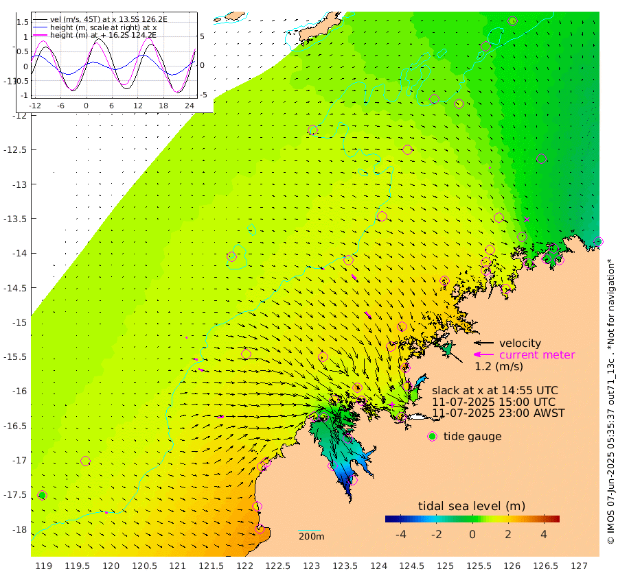 8cm/s 86T +10cm/s rms + 1cm/s 1T. NWSBRW 205m 16cm/s 116T +11cm/s rms + 6cm/s -110T. NWSROW 199m 51cm/s 141T +5cm/s rms + 2cm/s 65T. CAM050 58m 36cm/s 134T +12cm/s rms + 5cm/s 92T. CAM100 99m 10cm/s 97T +7cm/s rms + 1cm/s -85T. KIM400 396m 20cm/s 105T +9cm/s rms + 5cm/s -119T. KIM200 208m 31cm/s 109T +11cm/s rms + 5cm/s -147T. KIM100 99m 39cm/s 80T +8cm/s rms + 3cm/s -103T. KIM050 59m 7cm/s 145T +4cm/s rms + 2cm/s 23T. TIMORS88 91m 23cm Imperieuse Reef 95cm Mermaid Reef 246cm Broome 173cm Cape Baskerville 189cm Red Bluff 156cm Cape Boileau 84cm Scott Reef (WA) 82cm Ashmore Reef 129cm Karrakatta Bay 85cm Sunday Island -149cm Valentine Island -226cm Derby -89cm Port Usborne 171cm Bedford Islands 208cm Yampi Sound (Koolan Island) 257cm Macleay Island 179cm Adele Island 136cm Browse Island 223cm Shale Island 189cm Lizard Island 311cm Hall Point 202cm Degerando Island 198cm White Island 93cm Skua No. 4 Well 76cm Jabiru 183cm Maret Island 158cm Baudin Island 148cm Cape Voltaire (Krait Bay) 36cm Dillon Shoal 57cm Laminaria 131cm Port Warrender 51cm Troughton Island 141cm Cassini Island 86cm West Holothuria Reef Offshore 50cm Jar Island 117cm Lynher Bank 137cm Heywood Shoal 57cm Pee Shoal 1cm Van Cloon Shoal 2cm Carronade Island 1cm Guy Point -3cm Napier Broome Bay -117cm Lesueur Island